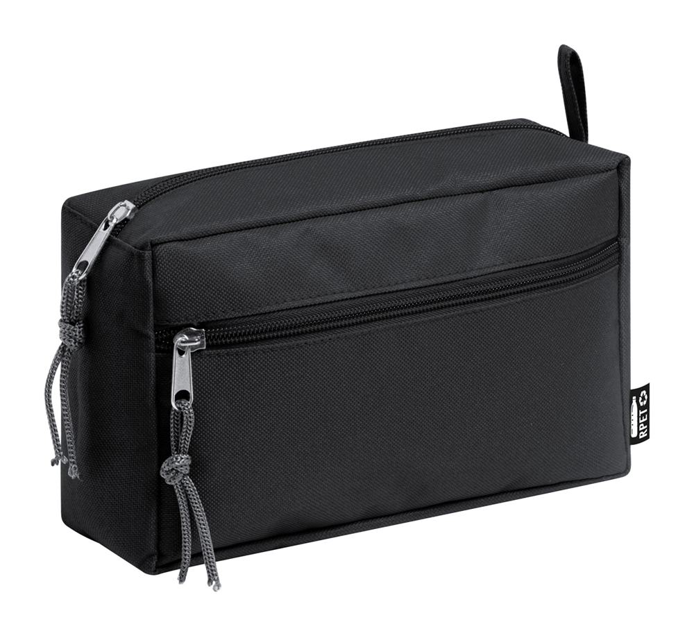 Gerecycleerde PET-make-up tas met twee compartimenten met rits.