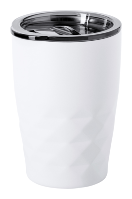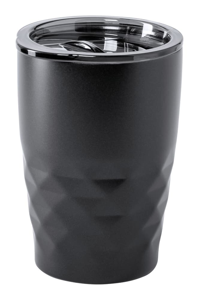 Dubbelwandige minerale, koper vacuüm thermobeker met plastic drinkdeksel, 350 ml. Koper-isolatie houdt dranken 12 uur warm en 24 uur koud.