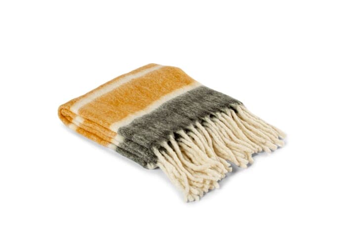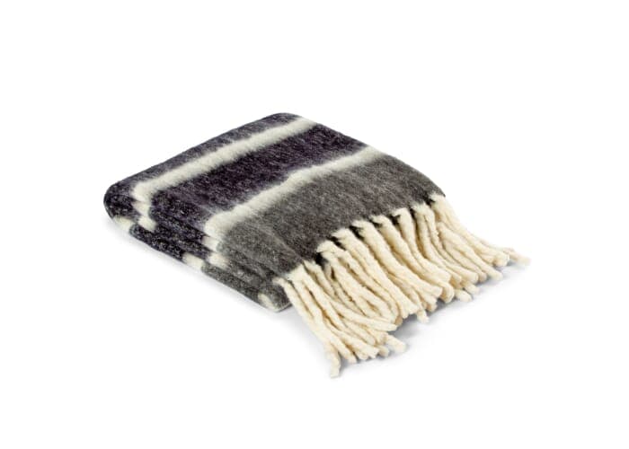 Deze gestreepte handgeweven plaid is zowel gezellig als stijlvol! Gemaakt van wol en acryl van hoge kwaliteit en met de grote dikke franjes geeft het een extra vleugje elegantie. Perfect voor een koude winteravond.