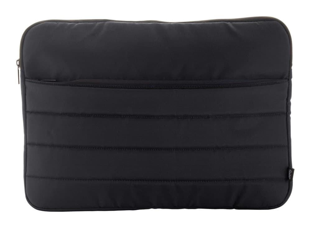 Volledig gewatteerde RPET laptoptas met compartimenten met rits. Geschikt voor laptops tot 15". 300D RPET polyester. Met RPET label.