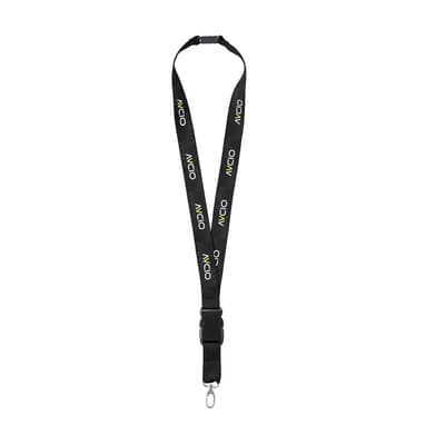 Lanyard van sterk geweven polyester. Met metalen karabijnhaak en kunststof veiligheidssluiting. Het onderste gedeelte is los te koppelen middels een kunststof buckle. Inclusief full colour sublimatiedruk. Made in Europe.