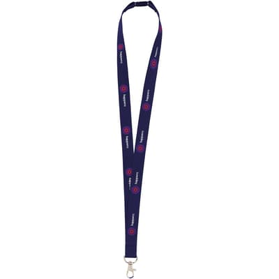 Lanyard van sterk geweven polyester. Met metalen karabijnhaak en kunststof veiligheidssluiting. Inclusief full colour sublimatiedruk. Made in Europe.