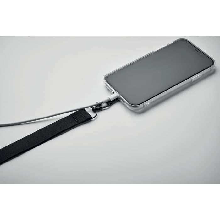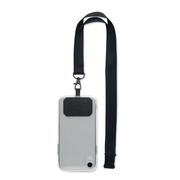 Lanyard van polyester met telefoonhouder en veiligheidsgesp. 2 cm.