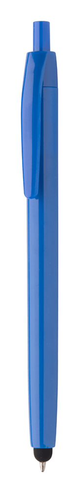Plastic balpen met touchscreen tip. Blauw schrijvend.