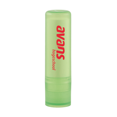 Lippenbalsem stick met ingrediëntensticker onderzijde.