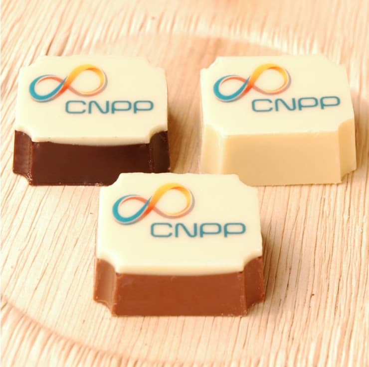 Logo bonbons rechthoek: heerlijke rechthoekige bonbons met jouw logo, perfect voor promoties of als stijlvol relatiegeschenk.
