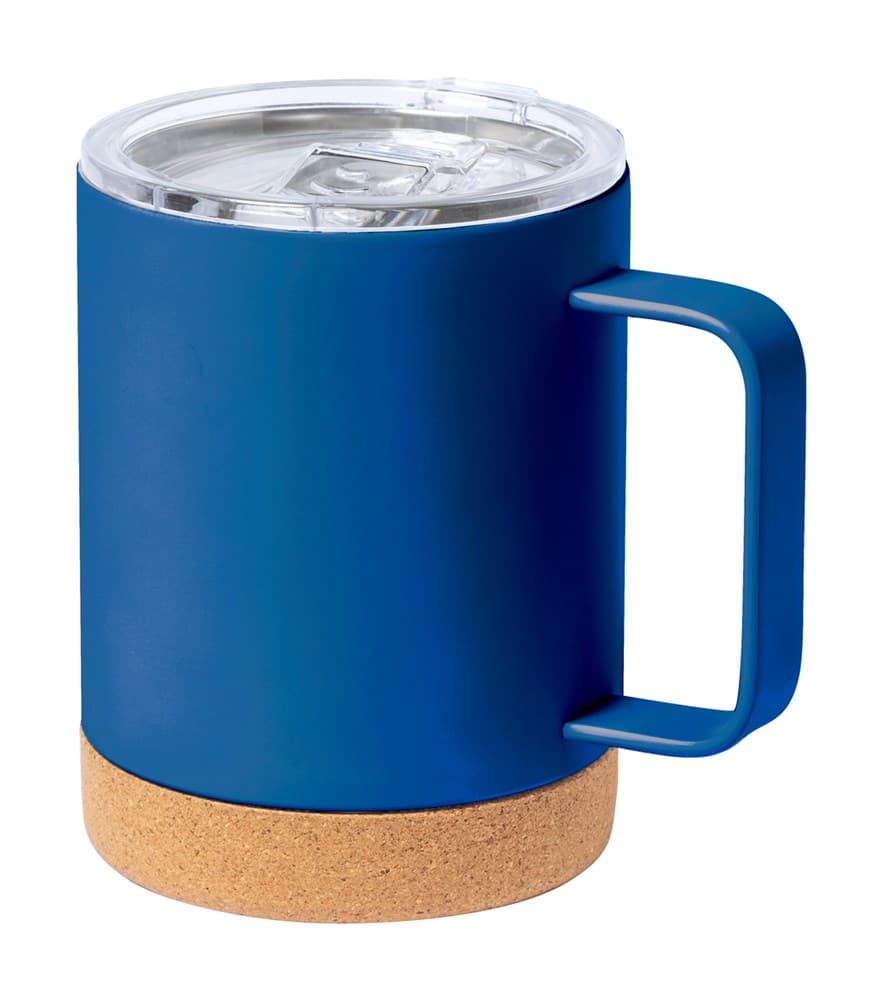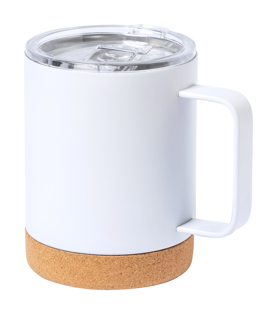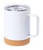 Dubbelwandige roestvrijstalen thermobeker met drinkdeksel en bodem van natuurkurk, 330 ml. In kraftpapier doos.