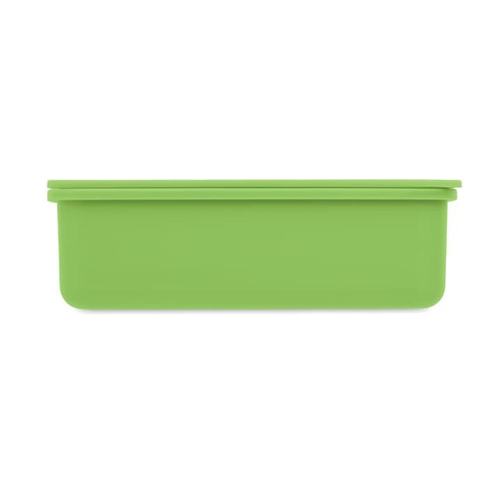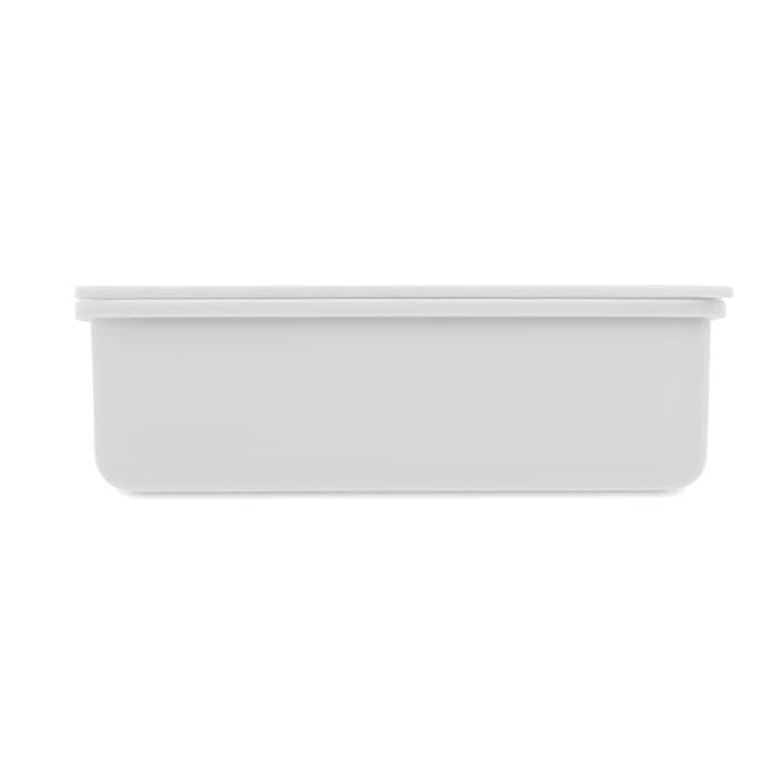 Lunchbox van PP kunststof met bestek en sluitelastiek.