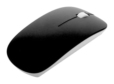 Draadloze optische muis met plastic behuizing. Werkt op 2 AAA batterijen, niet meegeleverd.