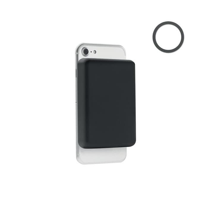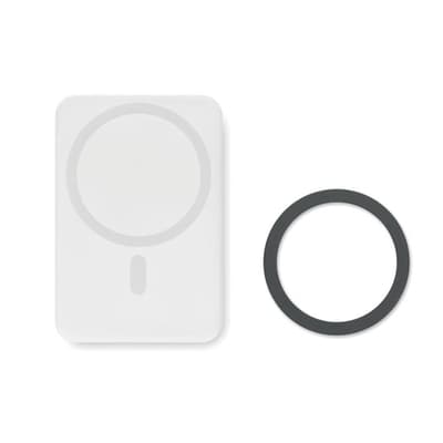 Magnetische bamboe draadloze lader (15W) en power Bank (5000 mAh). Output: DC 9V/1.1A (10W) ideaal voor snel opladen. Compatibel met iPhone® 12 en nieuwer. Inclusief extra magnetische metalen ring ter ondersteuning van het opladen van andere niet-magnetische draadloze oplaadbare telefoons. In/uitgang: Type-C.