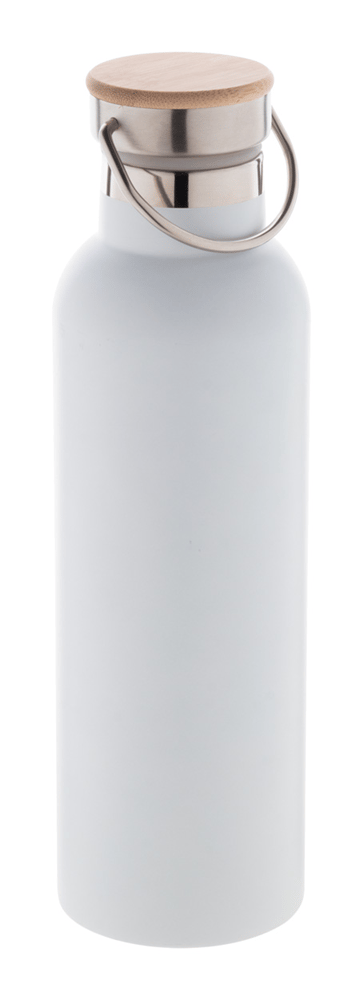 Dubbelwandige roestvrijstalen, vacuümgeïsoleerde fles met bamboe draagdeksel, 750 ml.