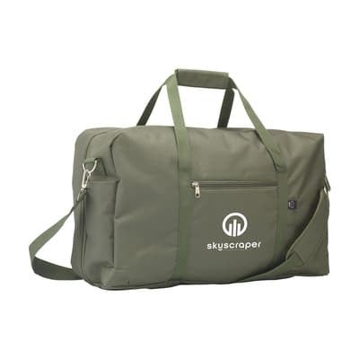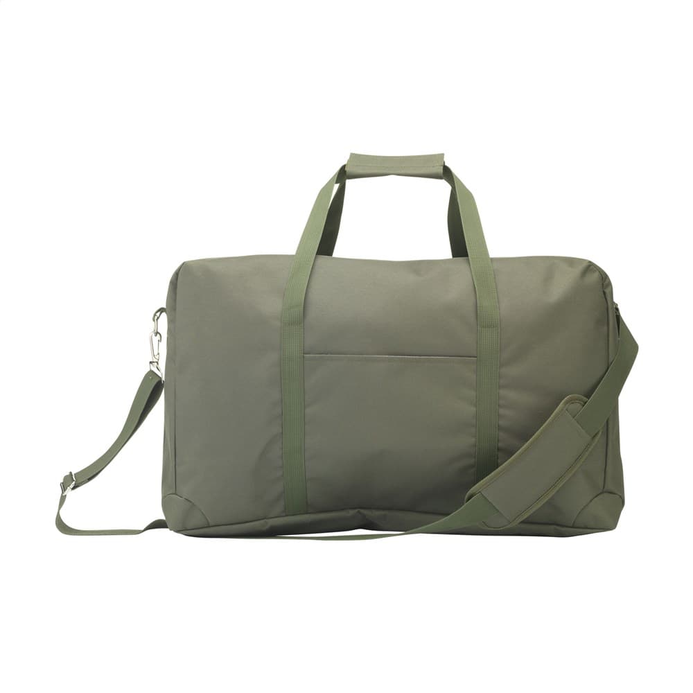 WoW! Praktische weekendtas van 600D RPET (gemaakt van gerecyclede PET-flessen). Indien je de rits helemaal opent, kun je de tas volledig openen en zijn er 2 aparte, ruime ritsvakken. Met de interne pakriemen zet je je bagage strak vast. De tas heeft een separaat laptopvak voor het veilig vervoeren van een laptop tot 13 inch. Daarnaast is de tas keurig afgewerkt met een binnenvoering en voorzien van 2 stevige handgrepen, beschermnoppen en een afneembare, verstelbare schouderband. De buitenzijde van de tas is voorzien van diverse opbergvakken. Inhoud ca. 40 liter.
