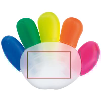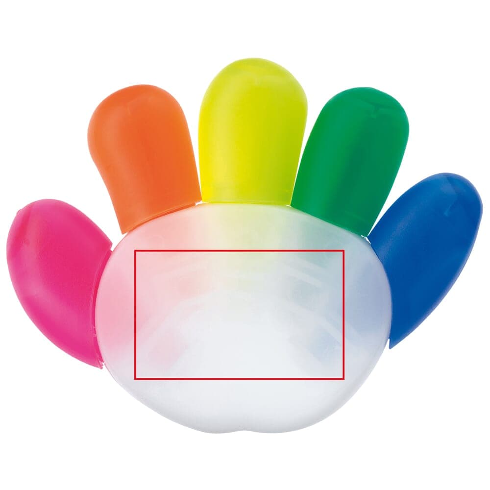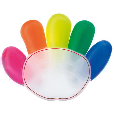 Toppoint design tekstmarker in de vorm van een hand met vijf schrijfkleuren. Te bedrukken met full-colour digitale print.