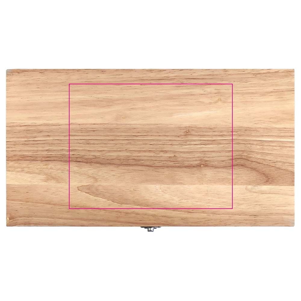 Een set van drie messen en een vleesvork in een mooie houten kist. De kist kan worden gepersonaliseerd met uw logo of tekst. Deze stijlvolle set zal er geweldig uitzien in elke keuken. Wordt geleverd in een geschenkdoos.