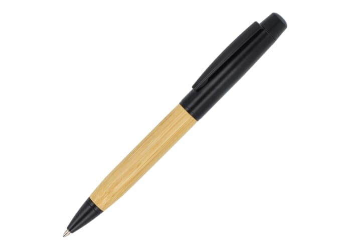 Metalen balpen bamboe in koker Zwart