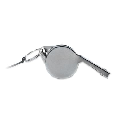 Een klassieker in een stijlvolle uitvoering: dit metalen fluitje aan een koord is een duurzaam en krachtig promotieartikel dat jarenlang meegaat. Dankzij het stevige metaal produceert het fluitje een helder, luid geluid dat goed hoorbaar is tijdens sportevenementen, trainingen of veiligheidsacties.