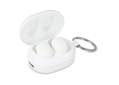 Mini Draadloze Oordopjes Sleutelhanger formaat Wit