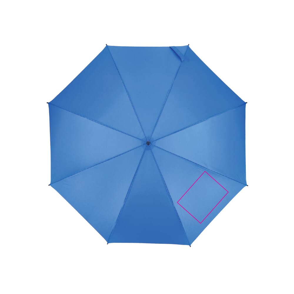 Deze 23" haakparaplu heeft ons unieke ergonomische handvat met een vierkante vorm en afgeronde hoeken voor een betere grip. Voorzien van automatische opening en een duurzaam fiberglas frame, ontworpen voor betrouwbare prestaties in regenachtige omstandigheden.