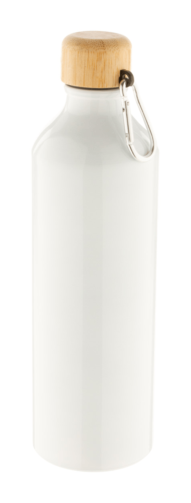 Aluminium fles met bamboe deksel en karabijnhaak, 800 ml.