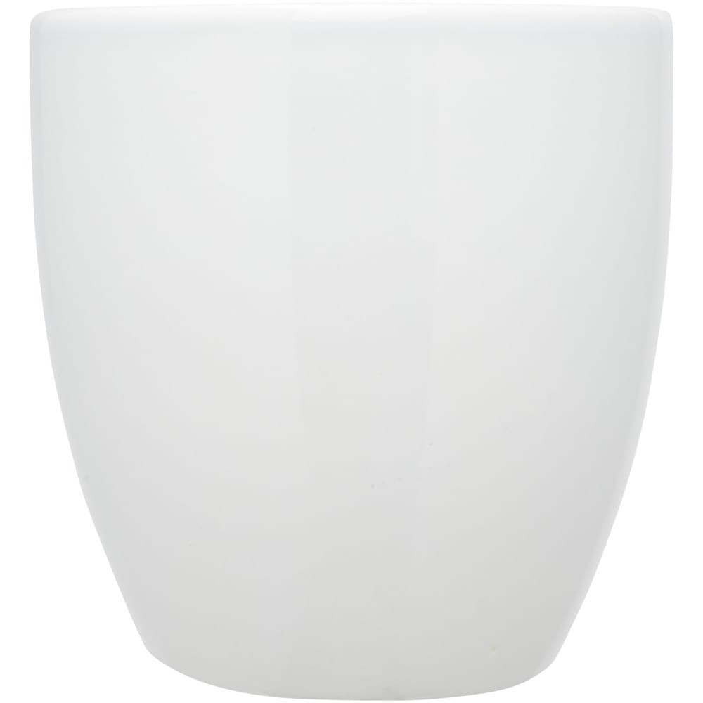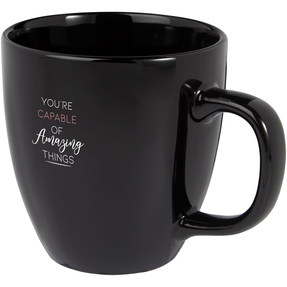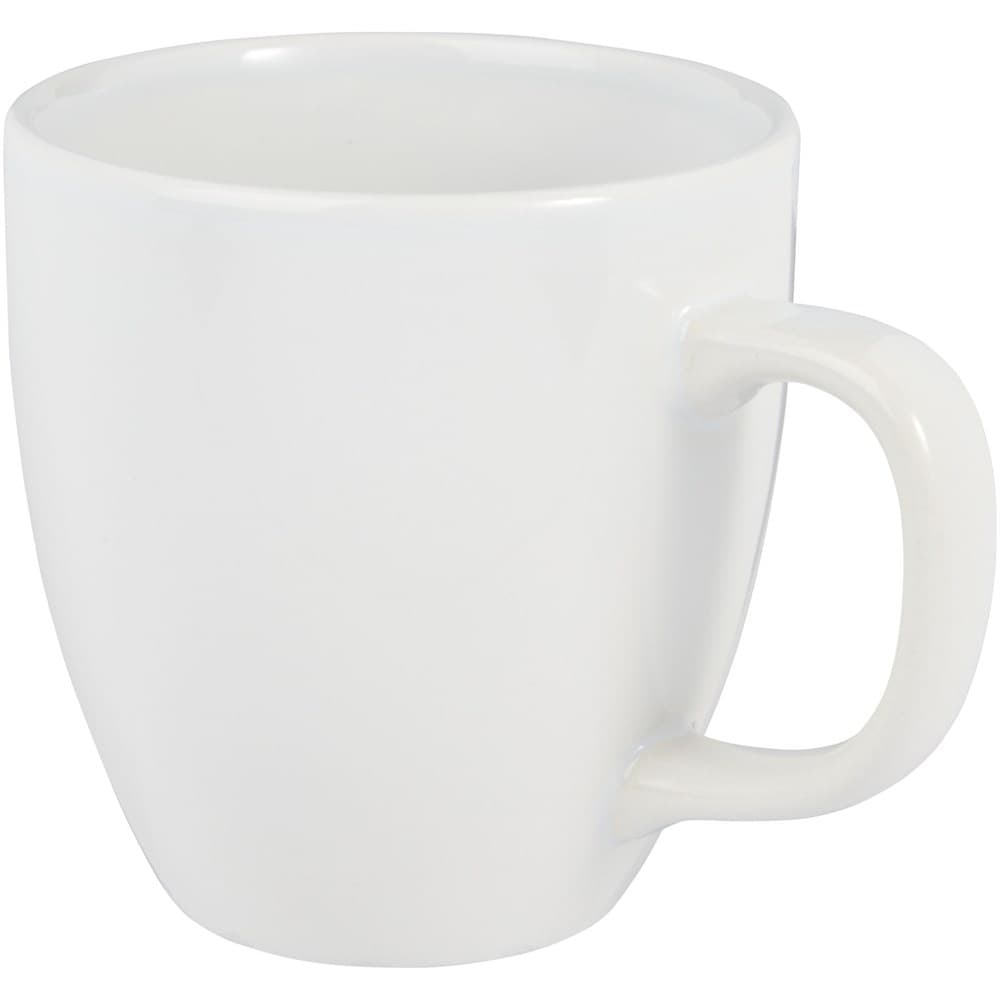 De keramische mok van Moni heeft een trendy glanzende afwerking die een strakke touch toevoegt. Hij heeft een groot handvat dat zorgt voor een comfortabele en stevige greep. De mok is veelzijdig genoeg om te gebruiken met zowel warme als koude dranken, zodat u kunt genieten van koffie, thee, soep en meer. Inhoud 430 ml Vaatwasmachinebestendig voor alle afdrukmethoden. Geleverd in een gerecycled kartonnen geschenkverpakking.