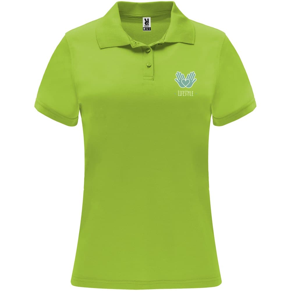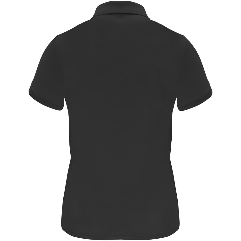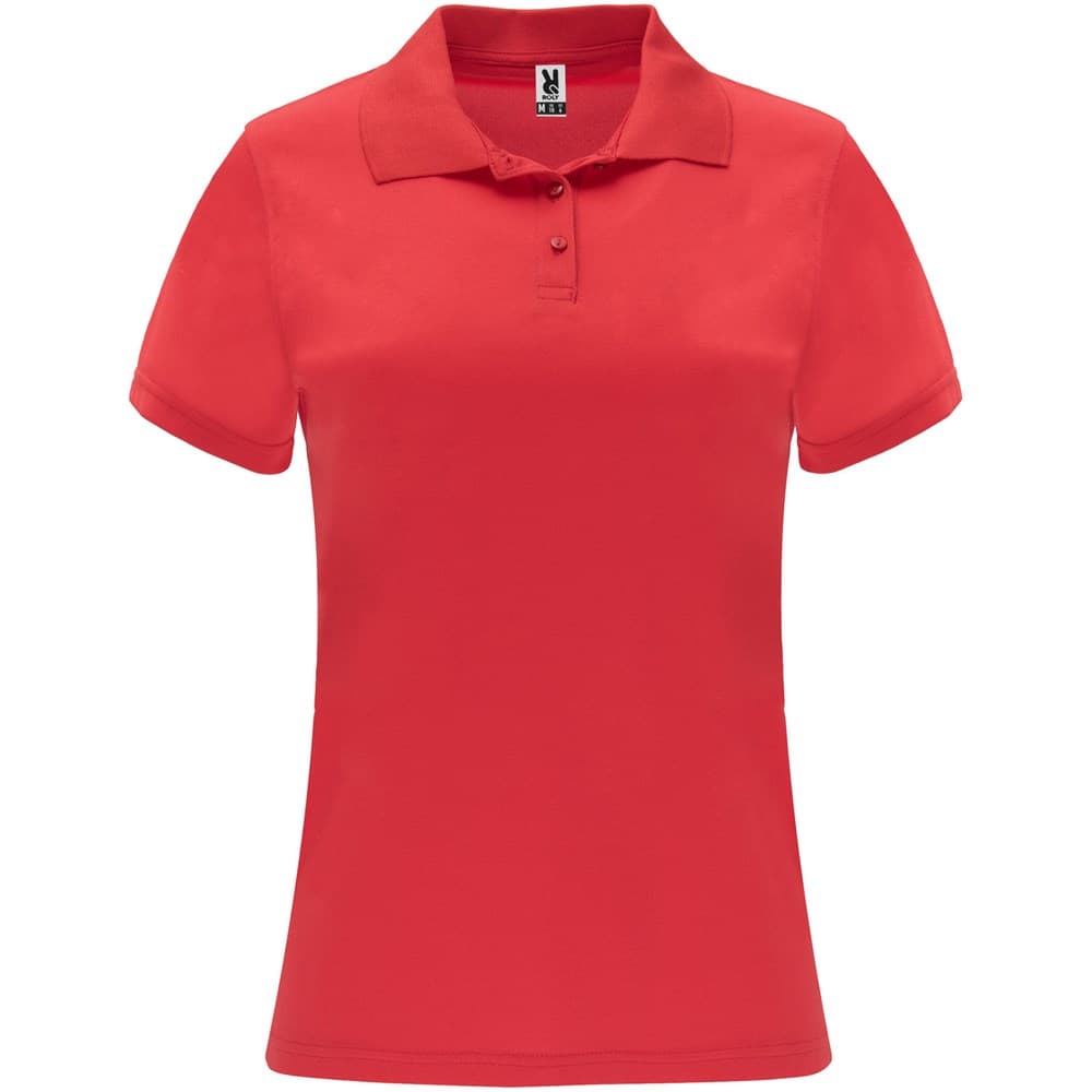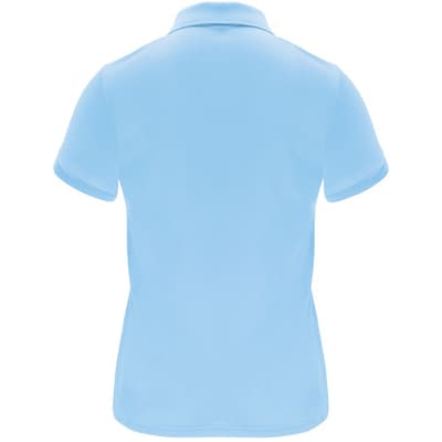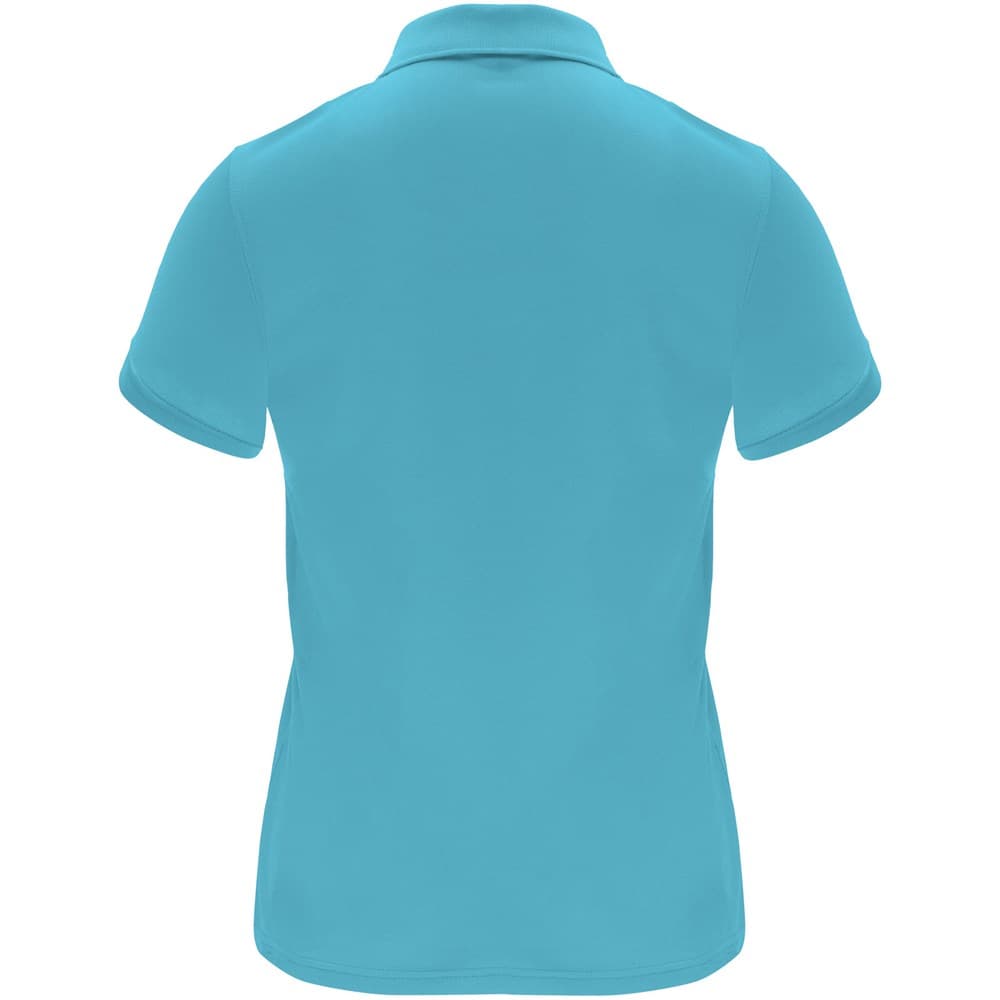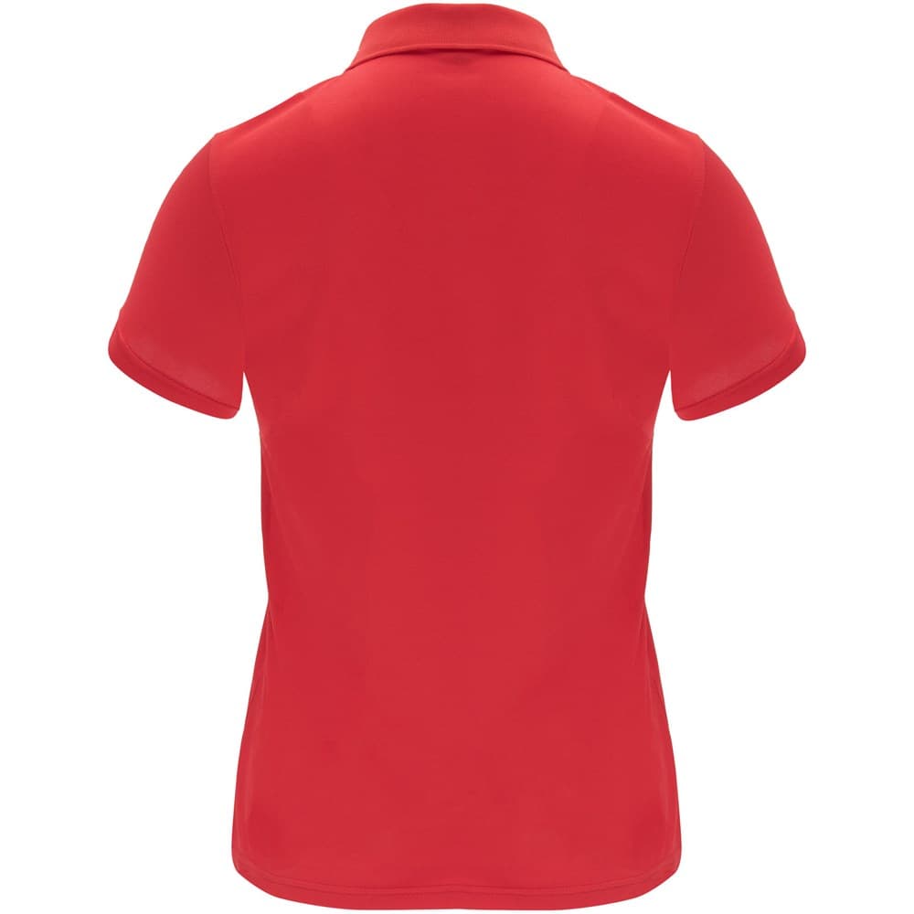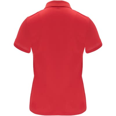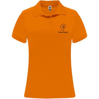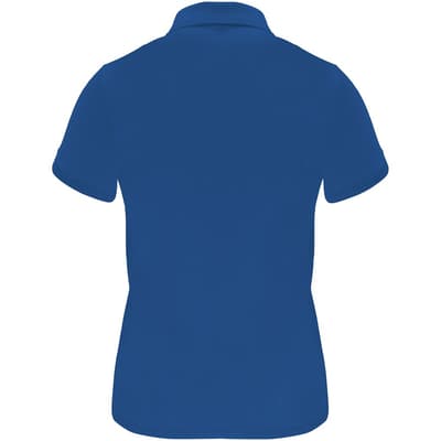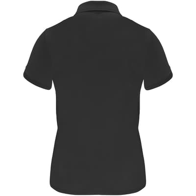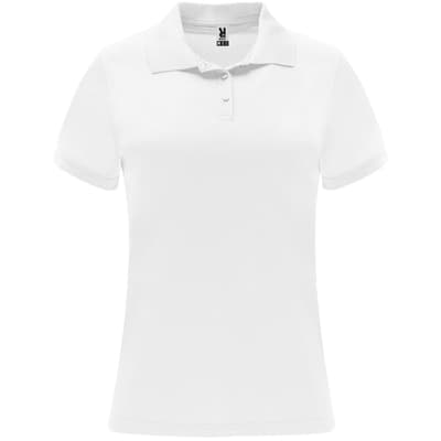 Technisch poloshirt met korte mouwen voor dames. Gebreide kraag met sluiting met drie knopen. Getailleerde snit. Ademende, gemakkelijk wasbare en droge stof. Verwijderbaar etiket. Technische stof. Ademende stof. Het model is 173 cm en draagt maat S.