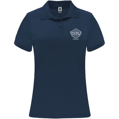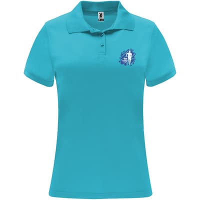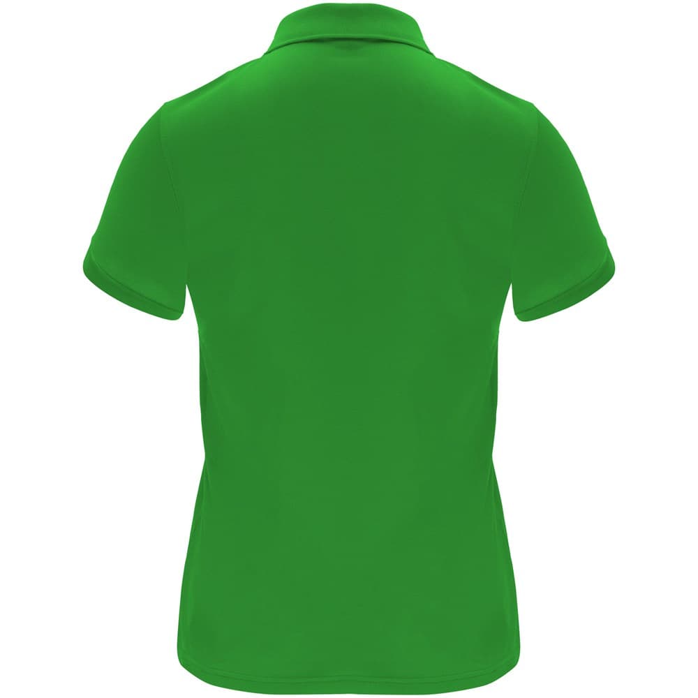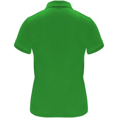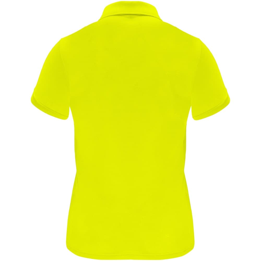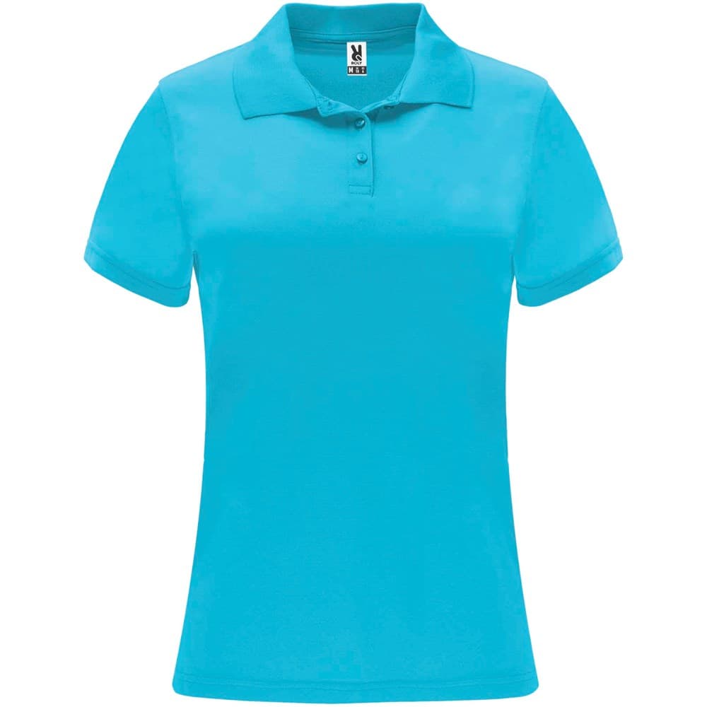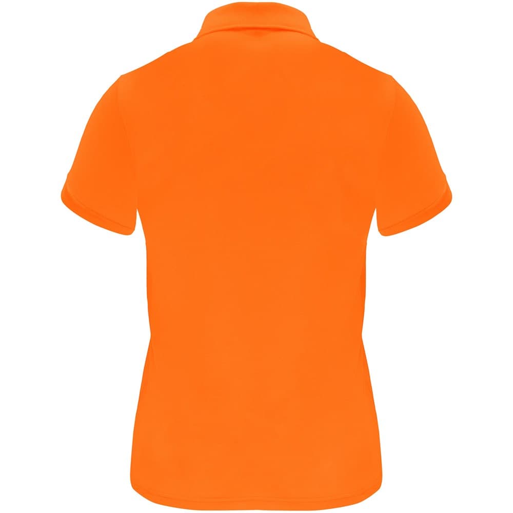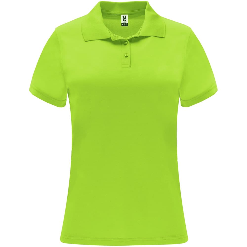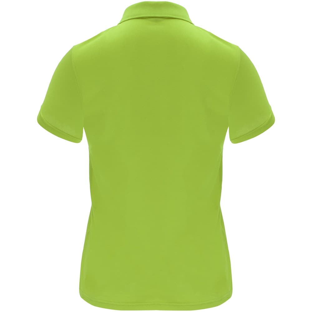 Technisch poloshirt met korte mouwen voor dames. Gebreide kraag met sluiting met drie knopen. Getailleerde snit. Ademende, gemakkelijk wasbare en droge stof. Verwijderbaar etiket. Technische stof. Ademende stof. Het model is 173 cm en draagt maat S.