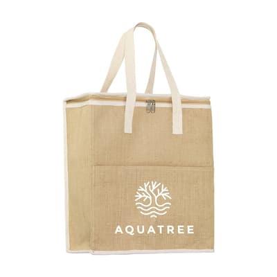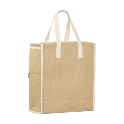 WoW! Duurzame koeltas in een materiaalcombinatie van stevig jute en katoen. Met ritssluiting en isolerende binnenzijde. In deze zeer ruime koeltas houd je eten en drinken koel tijdens een dagje weg. Deze tas heeft een extra opbergvak met rits aan de zijkant. Handig voor het opbergen van spullen die niet gekoeld hoeven te worden zoals je telefoon of portemonnee. Met geweven, katoenen hengsels. Inhoud ca. 24 liter.