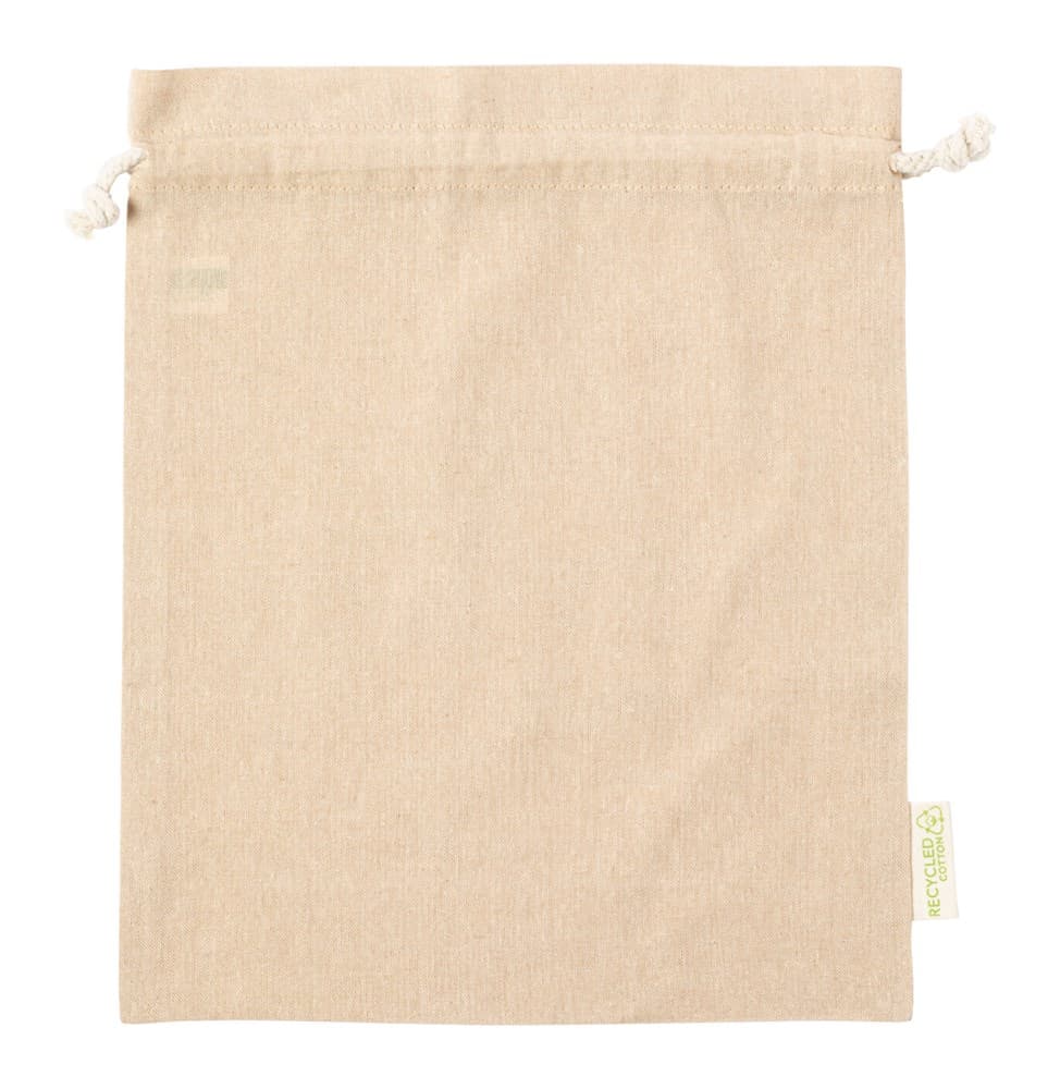 Herbruikbare tas van gerecycled katoen met trekkoordsluiting. 100% gerecycled katoen, 120 g/m².