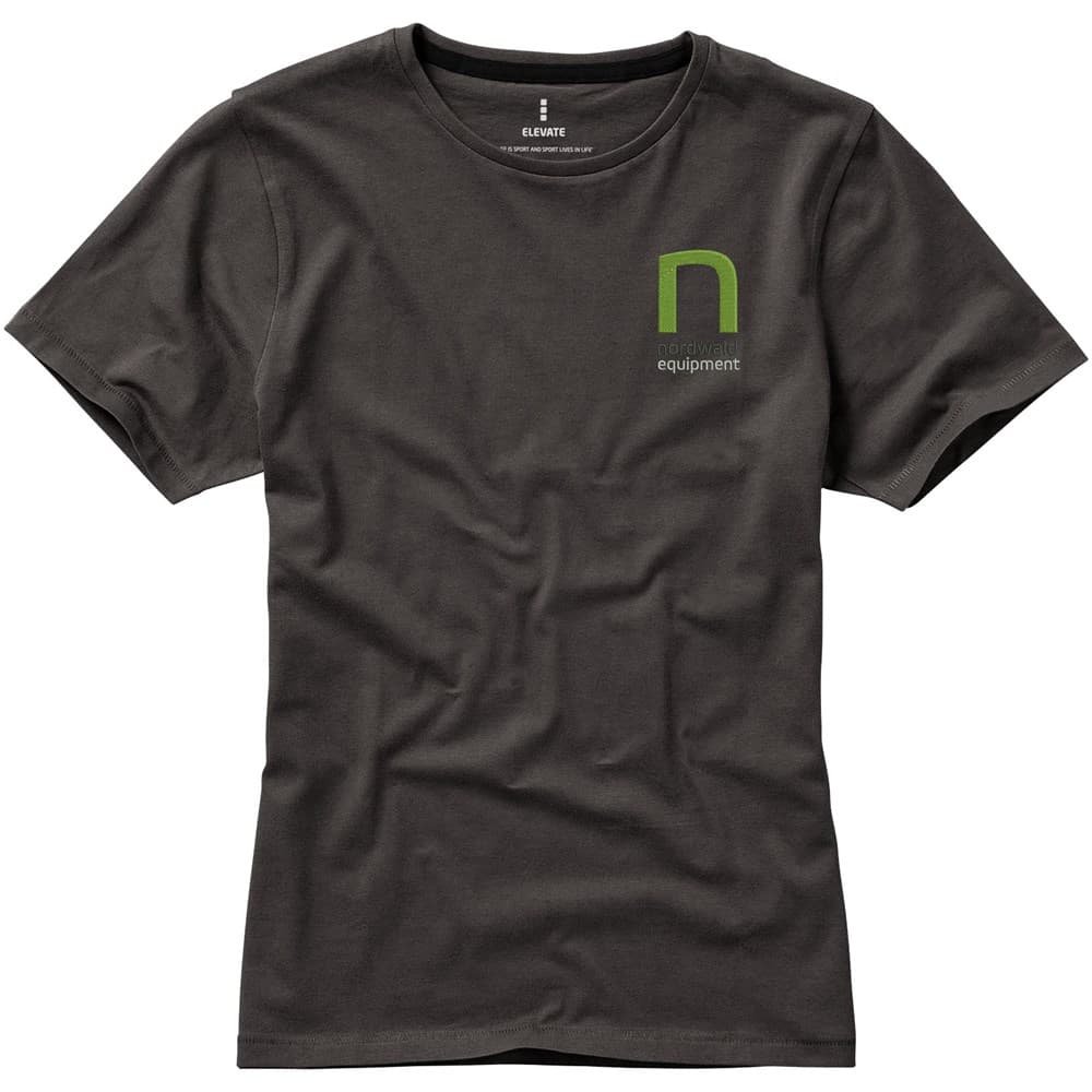 Het Nanaimo dames t-shirt met korte mouwen van 160 g/m² katoen is perfect voor elke gelegenheid en een comfortabele aanvulling op elke garderobe. Het ringspun katoen zorgt voor een sterker en gladder garen, wat resulteert in een duurzamere stof die een hoge kwaliteit van het merk garandeert. Het is gevormd voor een vrouwelijke look en heeft zijnaden voor een goede pasvorm, terwijl het gedrukte Elevate-merk in de nek bijdraagt aan het algehele comfort. De verstevigde schouders zorgen ook na langdurig gebruik voor een ononderbroken pasvorm.