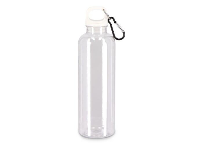 Blijf stijlvol en duurzaam gehydrateerd met deze 750 ml R-PET waterfles met transparante afwerking. Uitgerust met een handige karabijnhaakclip is hij perfect voor bevestiging aan rugzakken, handtassen of sporttassen. Verkrijgbaar in een reeks trendy en promotionele kleuren.
