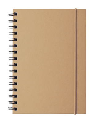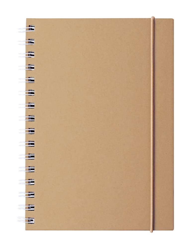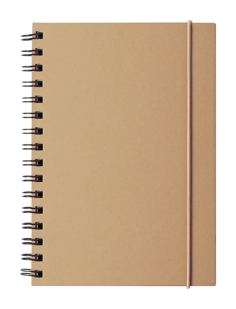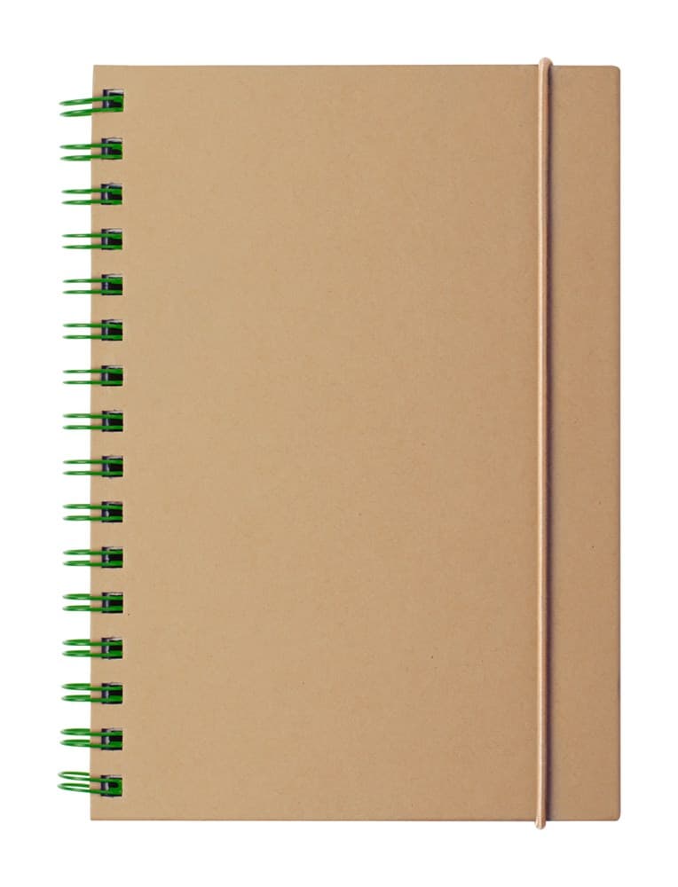 Gerecycled kartonnen gedekte spiraarvorming notitieboek met rubberen band. 80 gelinieerde vellen, A5-formaat.