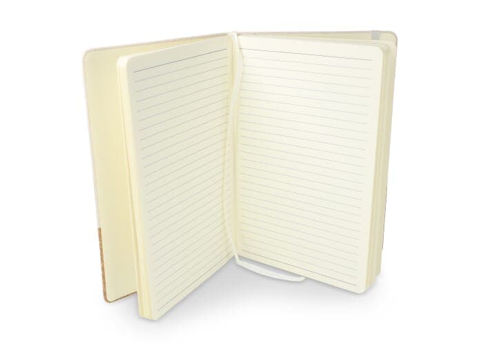 Dit notitieboek heeft een kaft van katoen en kurk met 80 gelinieerde vellen van 70g/m² FSC-gecertificeerd papier. Het heeft een sluiting met elastiek en een bladwijzer met lint voor extra gemak.