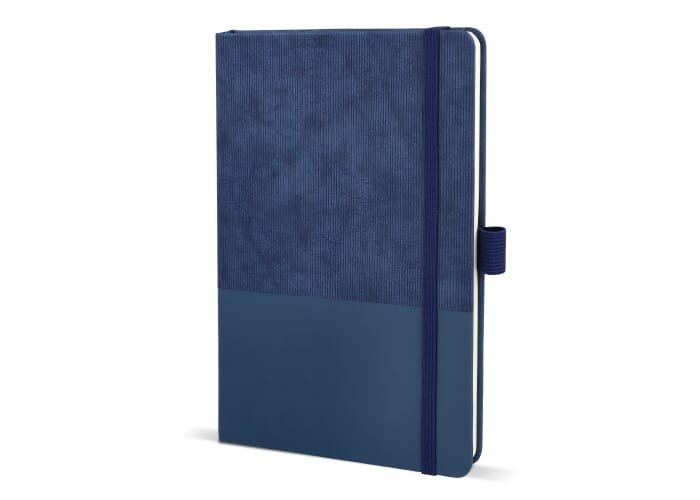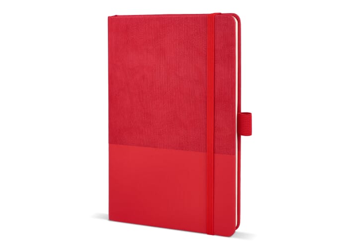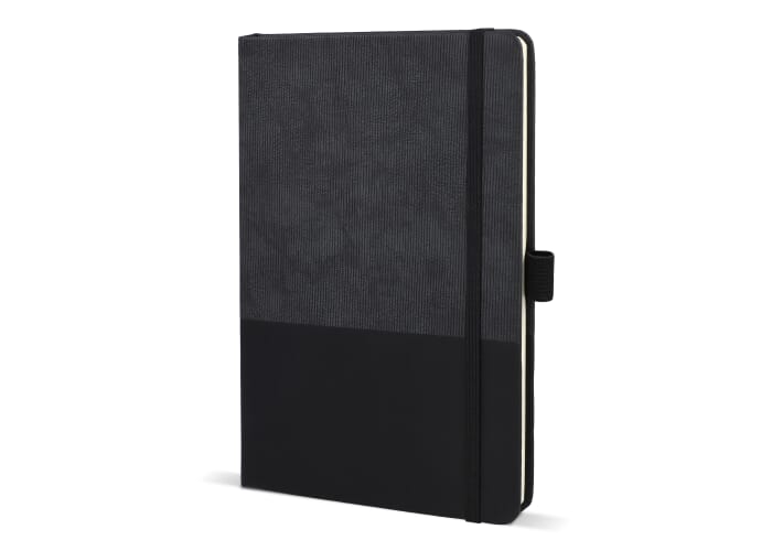 A5-notitieboek van thermo PU-leer met een moderne, premium uitstraling. Voorzien van een elastische sluiting, lintmarker en pennenlus. Het bevat 80 gelinieerde crèmekleurige pagina’s van FSC-gecertificeerd papier.