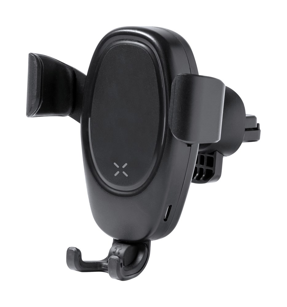 Auto mobiel houder in ABS kunststof met ingebouwde draadloze snellader (10W) en verstelbare ventilator rooster montage. Inclusief USB-oplaadkabel.
