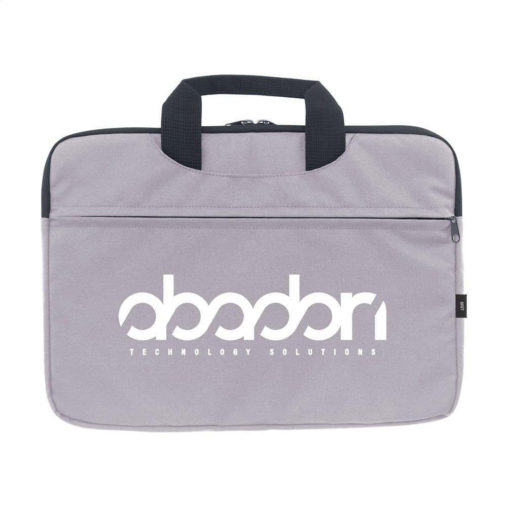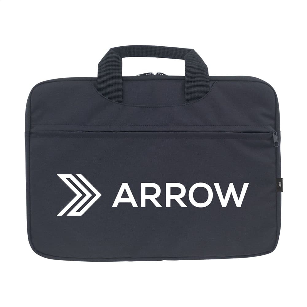 WoW! Stevige 15,6 inch laptophoes van 600D RPET polyester (gemaakt van gerecyclede PET-flessen). Met handgrepen. Het ruime, gevoerde hoofdvak is voorzien van een rits en foam ter bescherming van de laptop. Met een extra opbergvak aan de voor- en achterzijde.