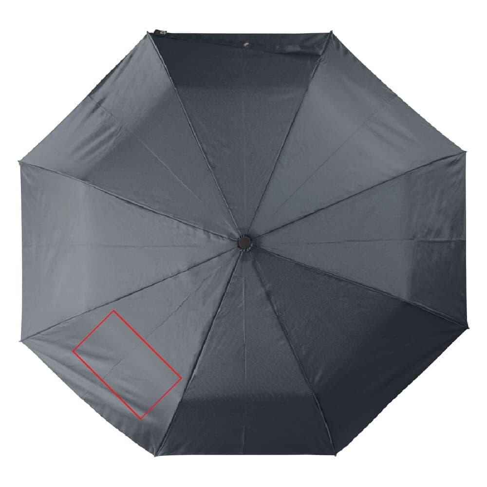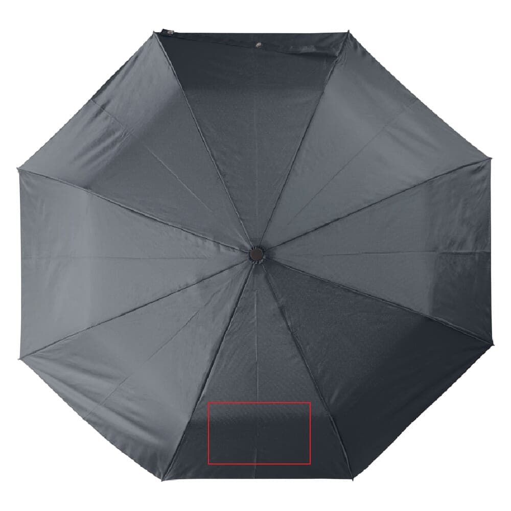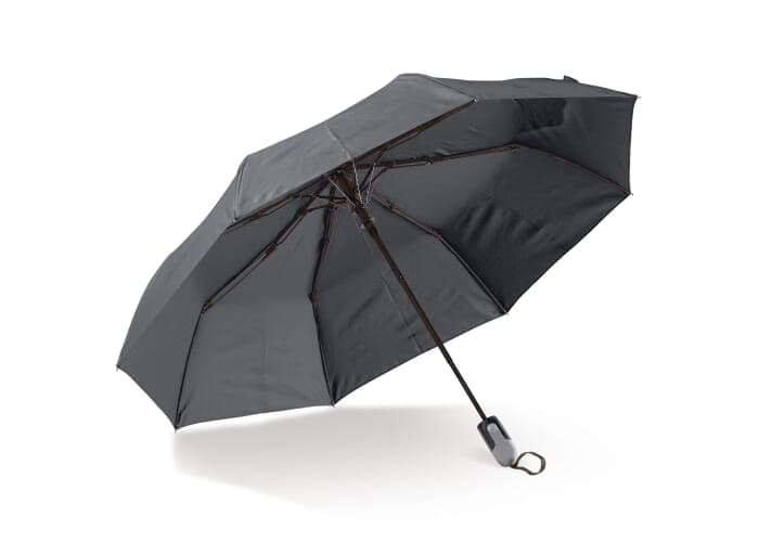 Opvouwbare paraplu met ergonomisch handvat. Het frame is deels gemaakt van glasvezel voor extra stevigheid. Het zwarte frame contrasteert mooi met het gekleurde pongee polyester doek van Pongee polyester. Wordt geleverd in een hoesje.