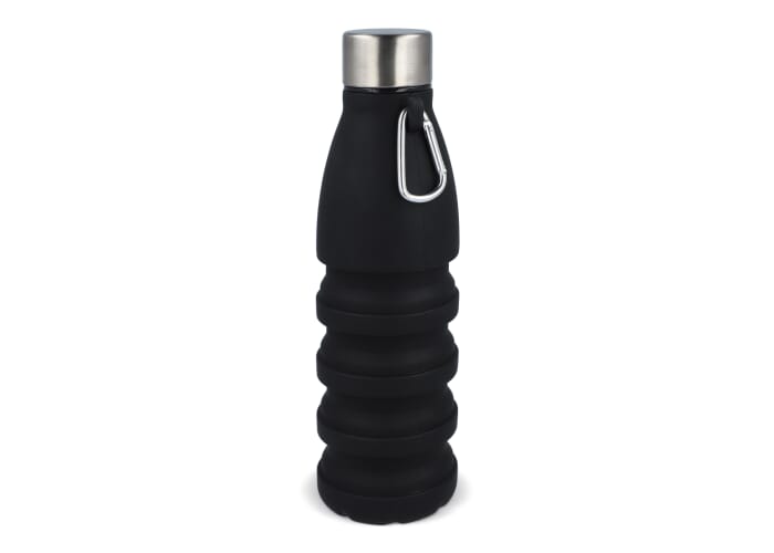 Opvouwbare siliconen waterfles met karabijnhaak om de fles aan je tas te bevestigen. De inhoud is 550ml.