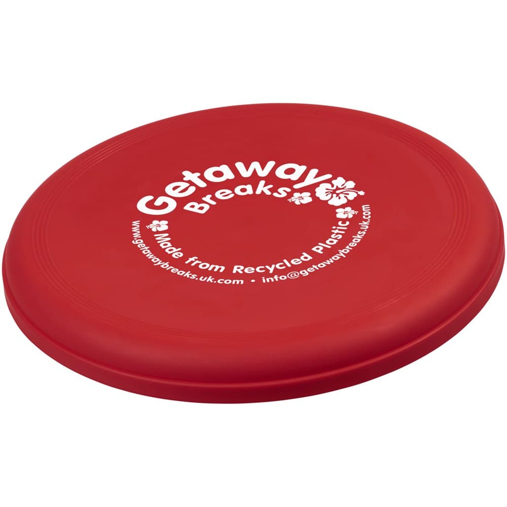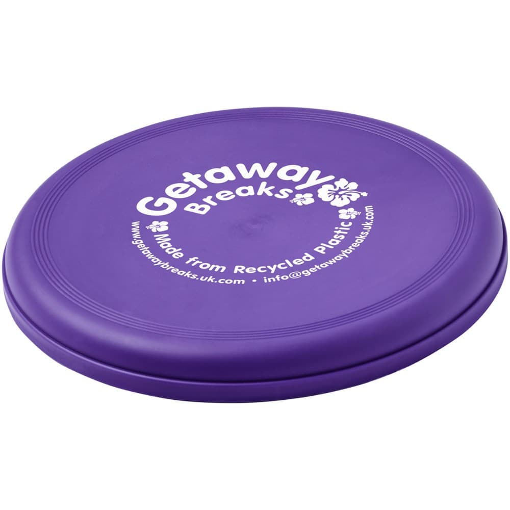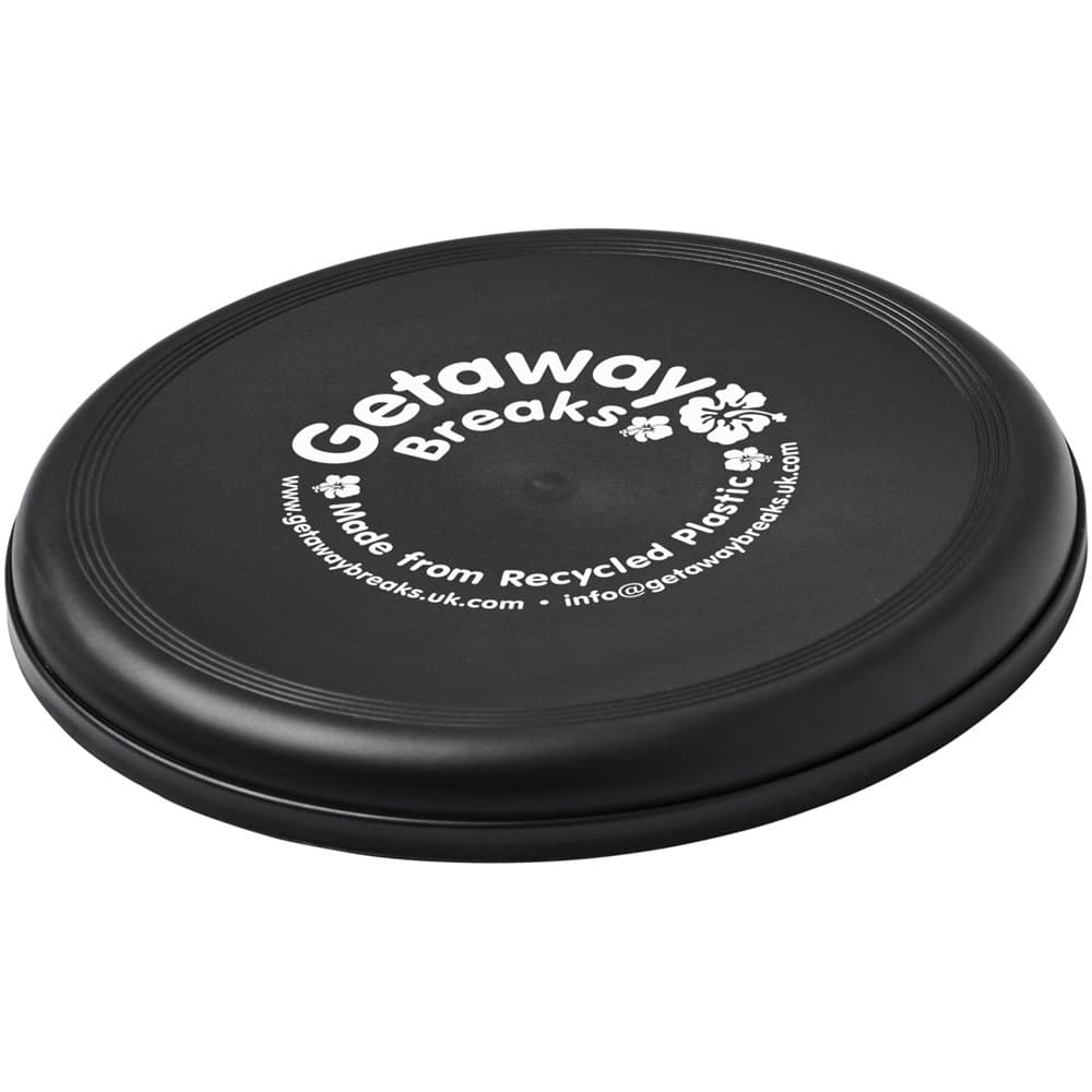 Frisbee gemaakt van 100% gerecycled plastic, een combinatie van een leuk promotie-idee met sterke duurzame referenties. Gemaakt in het Verenigd Koninkrijk en voldoet aan EN72. De frisbee kan een gespikkelde afwerking hebben door de aard van het gerecyclede materiaal.