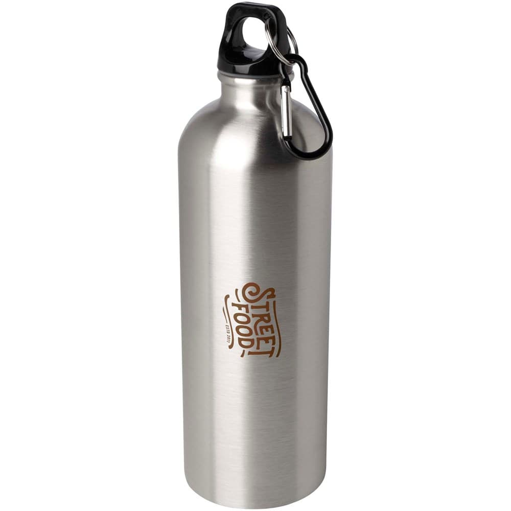 Blijf altijd gehydrateerd met deze duurzame maar lichtgewicht 750 ml waterfles van RCS-gecertificeerd gerecycled roestvrij staal. Het is de perfecte metgezel voor sport, daguitstapjes of voor gebruik op kantoor. De enkelwandige Oregon-fles heeft een draaideksel en biedt voldoende ruimte om elk soort logo toe te voegen. Klem de bevestigde karabijnhaak (niet geschikt om mee te klimmen) stevig vast aan een tas om deze niet te verliezen.