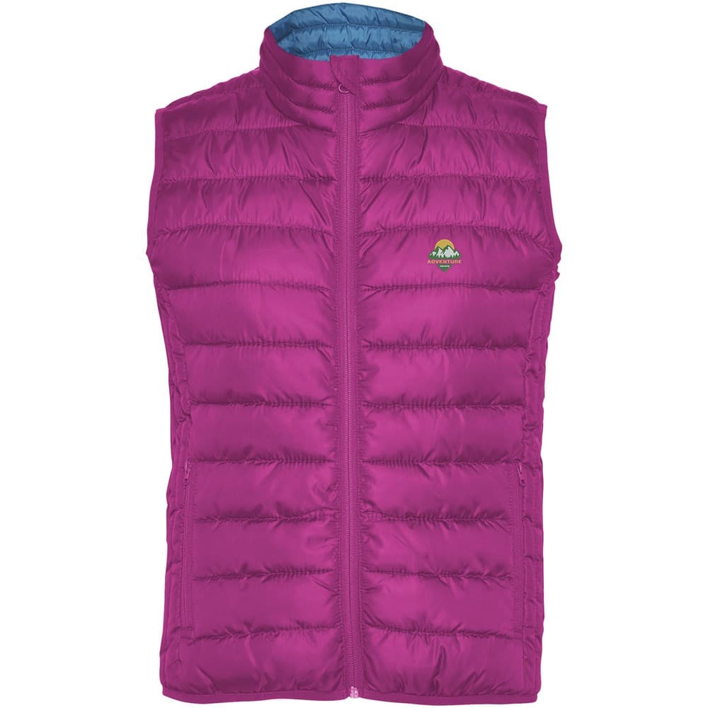 Gilet met dons voor dames. Bijpassende omgekeerde ritsen. Twee voorzakken met rits. Contrasterende binnenvoering. Bijpassende elastische bies in de zoom. Inclusief opbergtas. Licht en opvouwbaar kledingstuk. Nauwsluitende pasvorm. Waterafstotend. Winddicht model. Het model is 174 cm en draagt maat S. Perfect voor bodywarmers bedrukken.