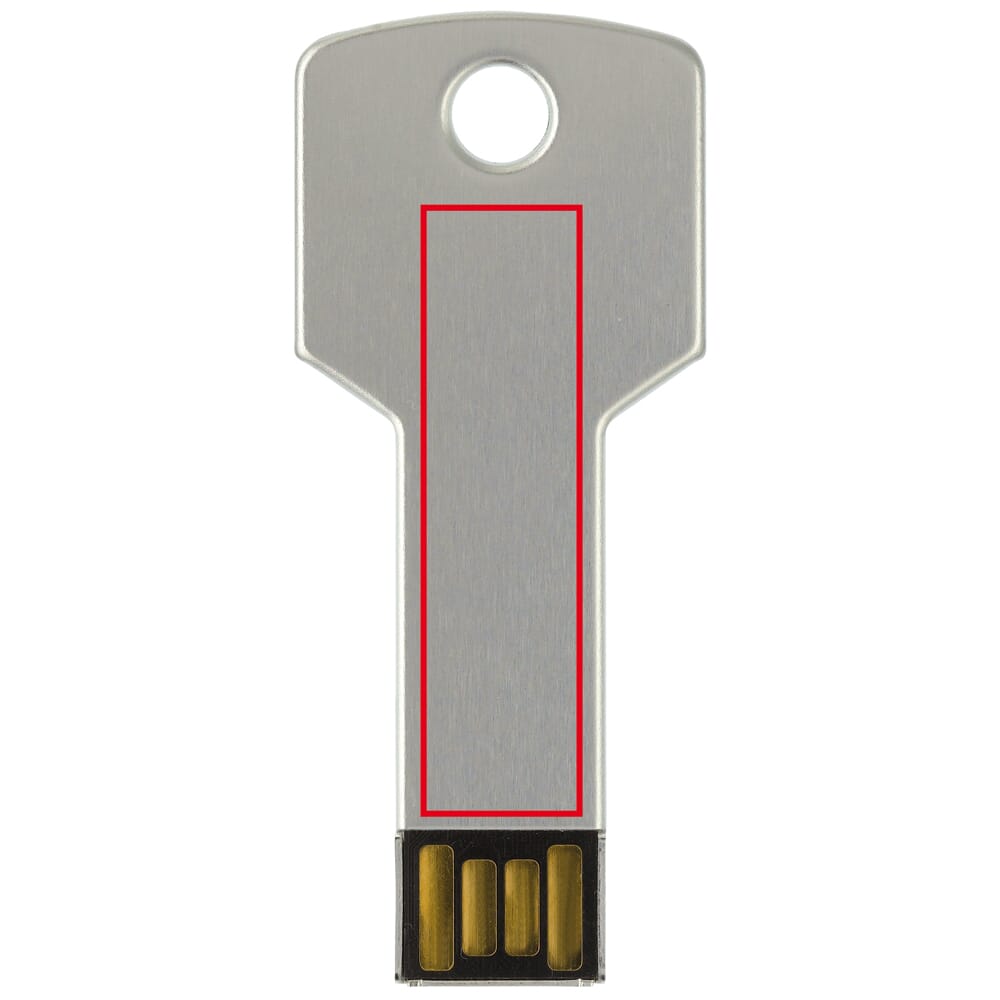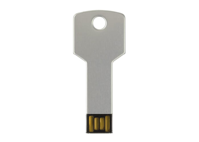 USB flash drive in sleutelvorm. Aluminium materiaal. Standaard in een witte geschenkverpakking geleverd. Prijzen zijn exclusief de wettelijk verplichte €0,40 thuiskopieheffing.