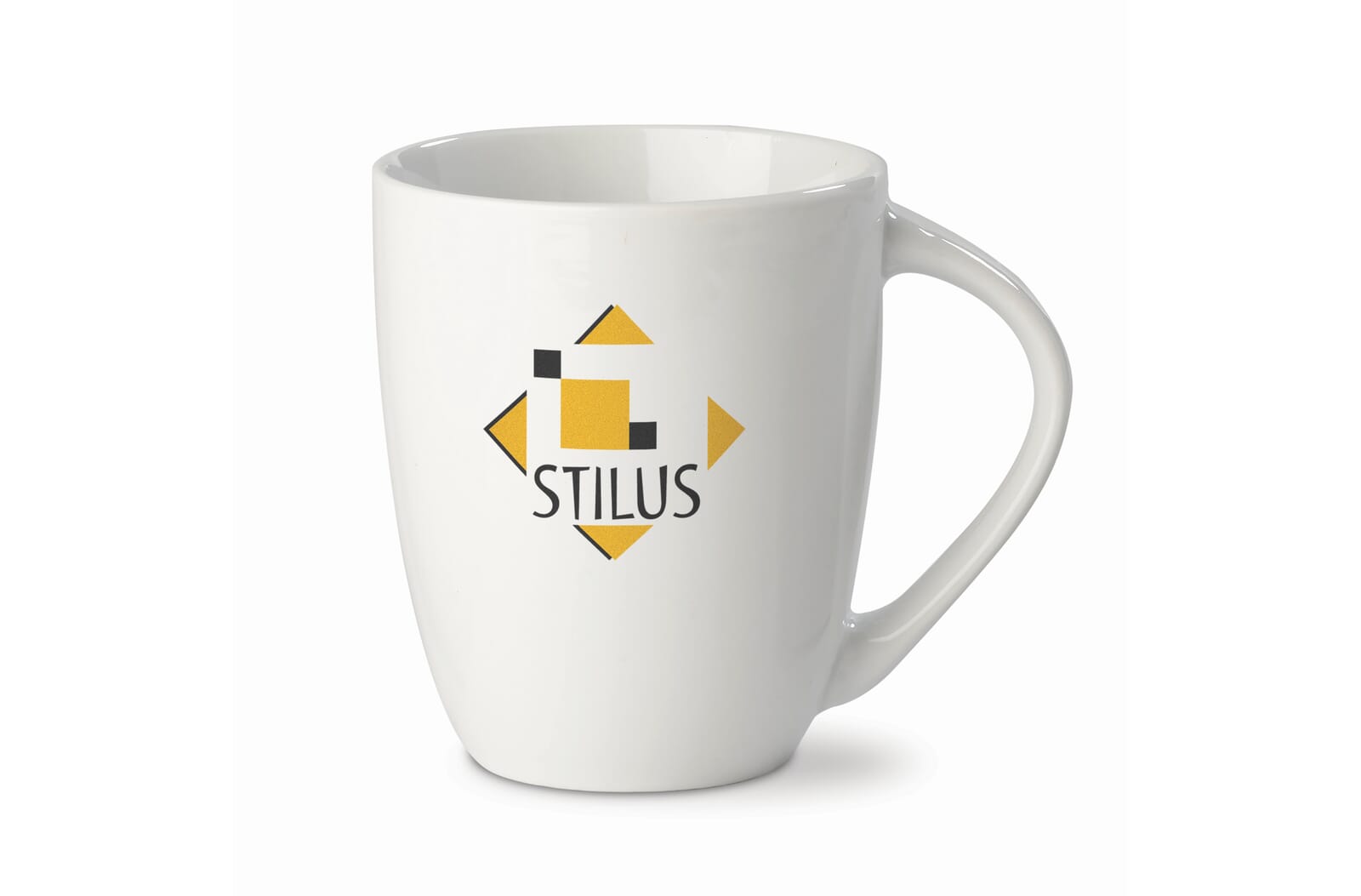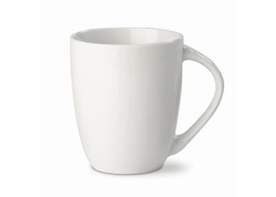 Porseleinen witte mok. Conisch model met groot oor.