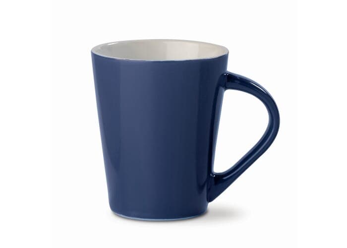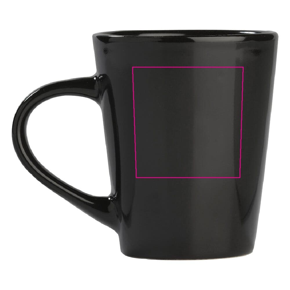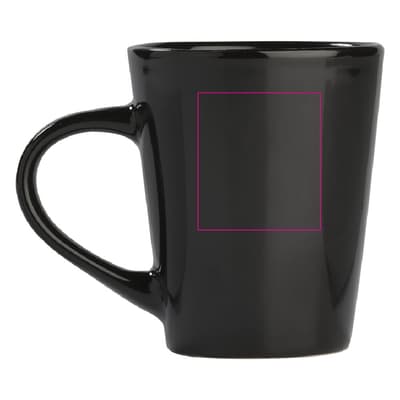 Gekleurde aardewerken mok met een conisch design. Perfect voor stalen mokken bedrukken.