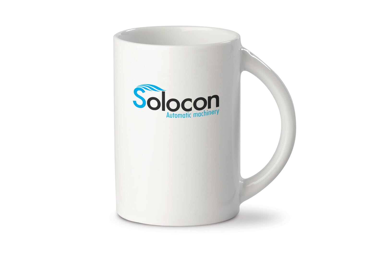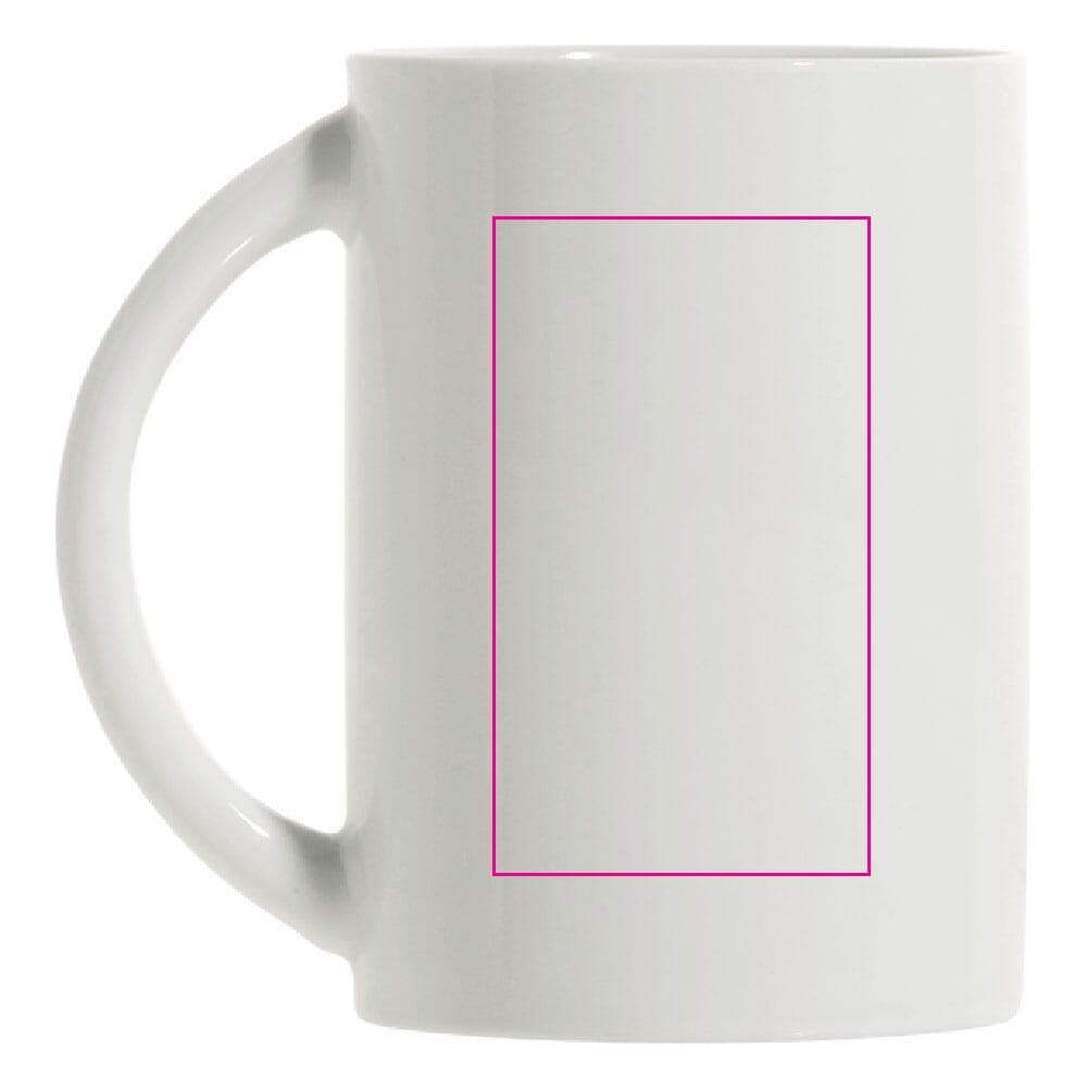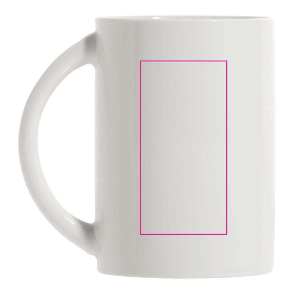 Hoogwaardige porseleinen witte mok geproduceerd in Europa. Hoog en slank model met groot oor.