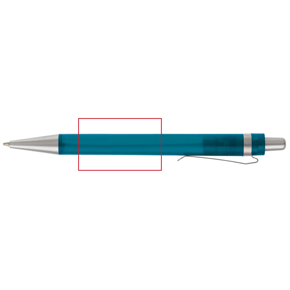 Transparante plastic metalen balpen met clip. Ook te verkrijgen in hardcolour. Blauwschrijvend met X20 vulling.