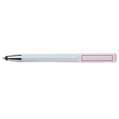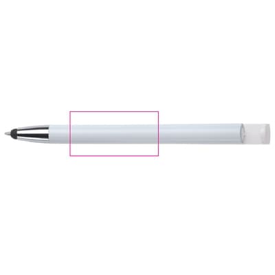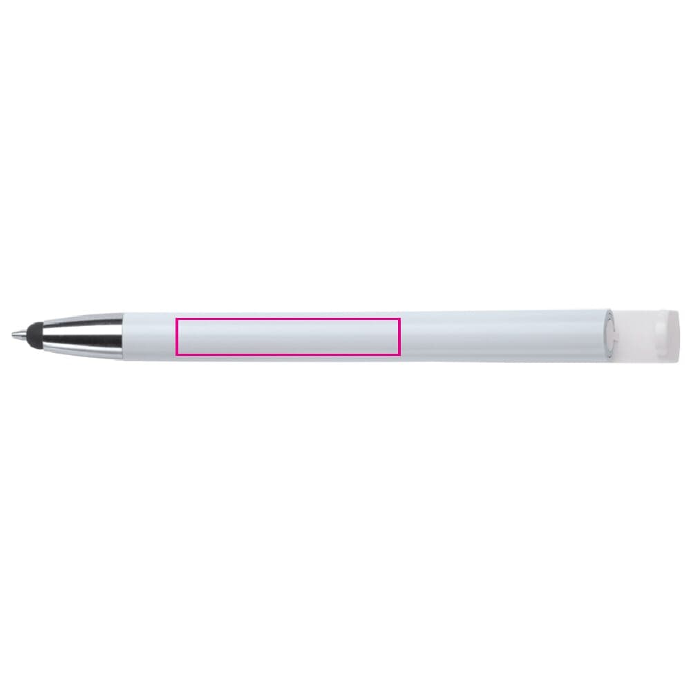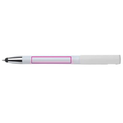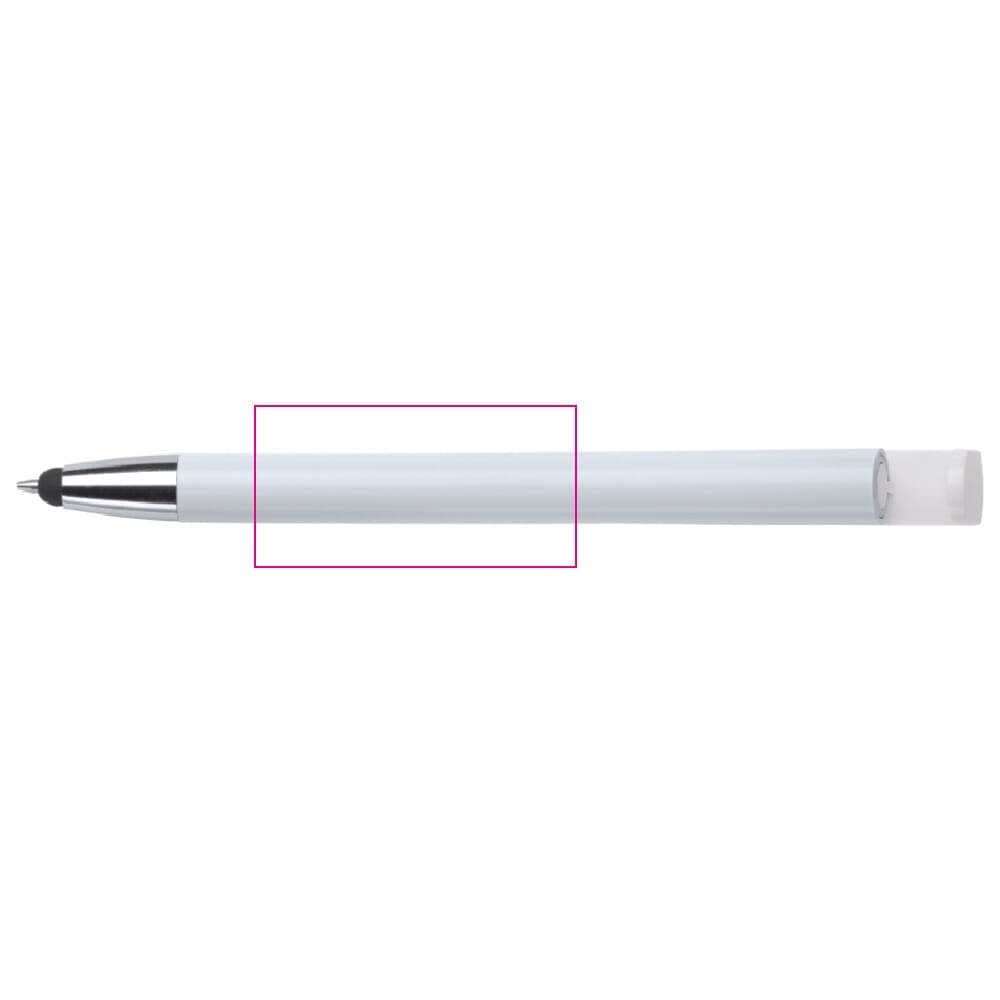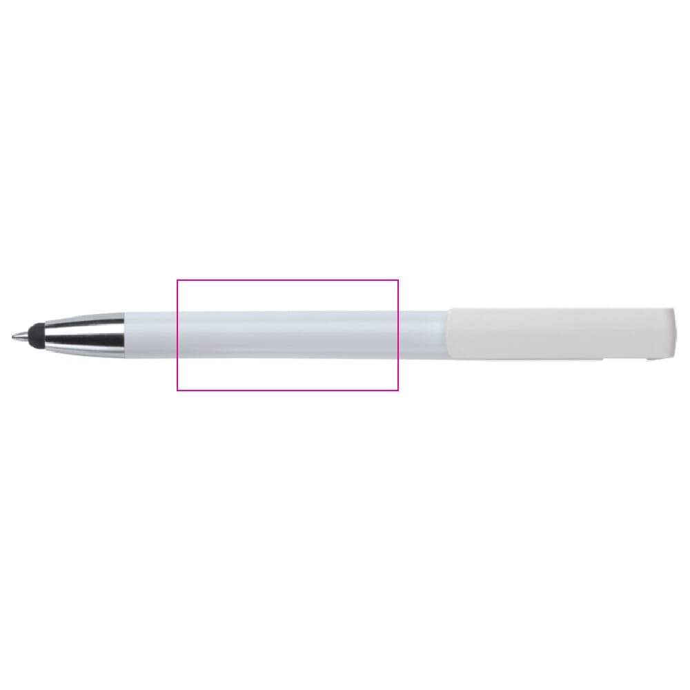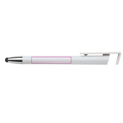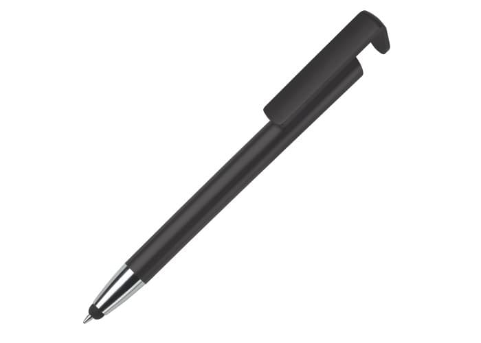 Moderne 3-in-1 balpen met stylus en telefoonstandaard. Een zeer hippe weggever in een strak design. Blauwschrijvende vulling en ideaal voor pennen bedrukken.