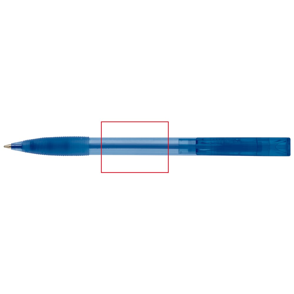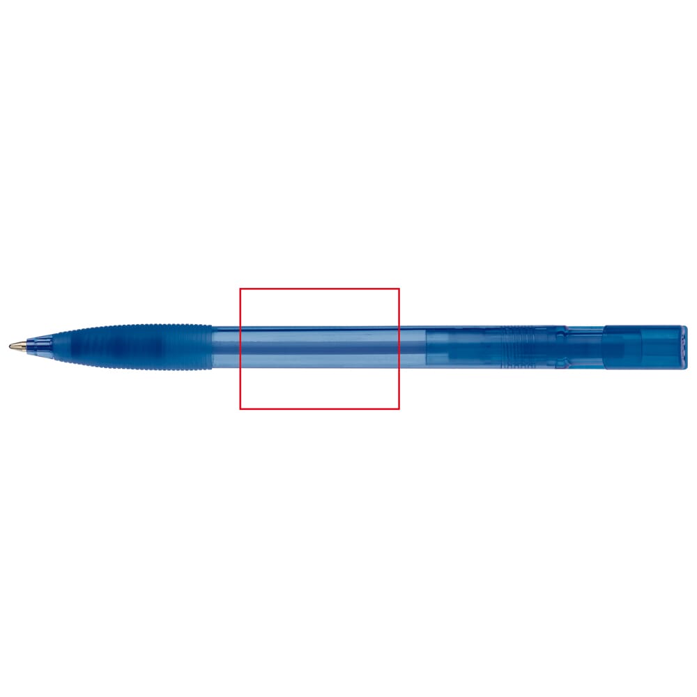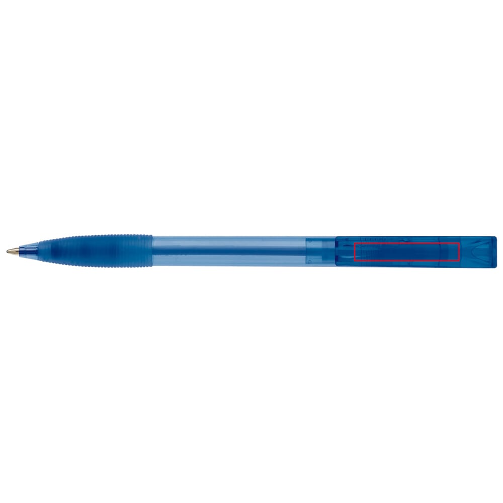 Toppoint design balpen, geproduceerd in Duitsland. Deze pen bevat een blauwschrijvende X20 vulling voor 2,5km schrijfplezier. Transparante pen met rubberen grip.