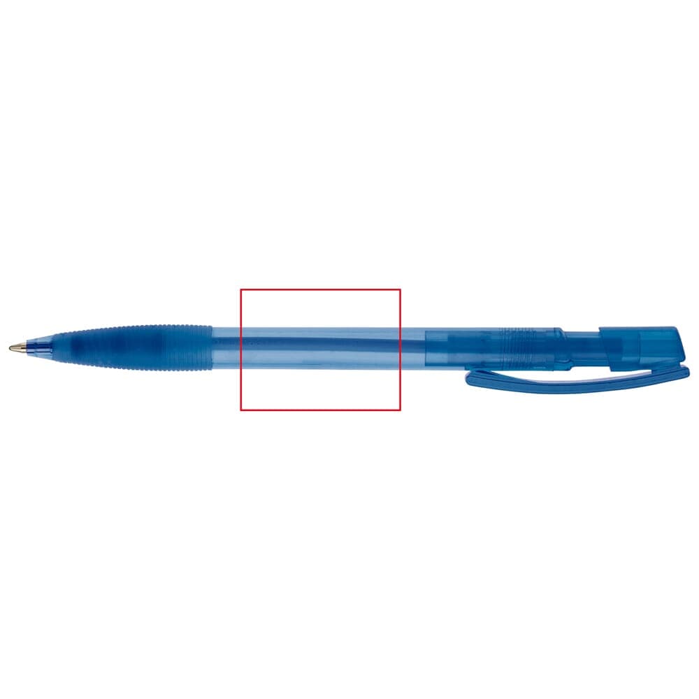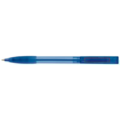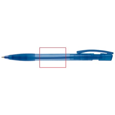 Toppoint design balpen, geproduceerd in Duitsland. Deze pen bevat een blauwschrijvende X20 vulling voor 2,5km schrijfplezier. Transparante pen met rubberen grip.