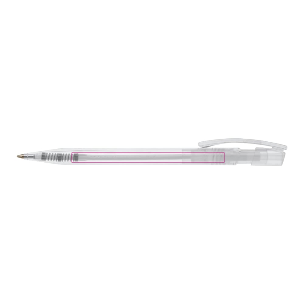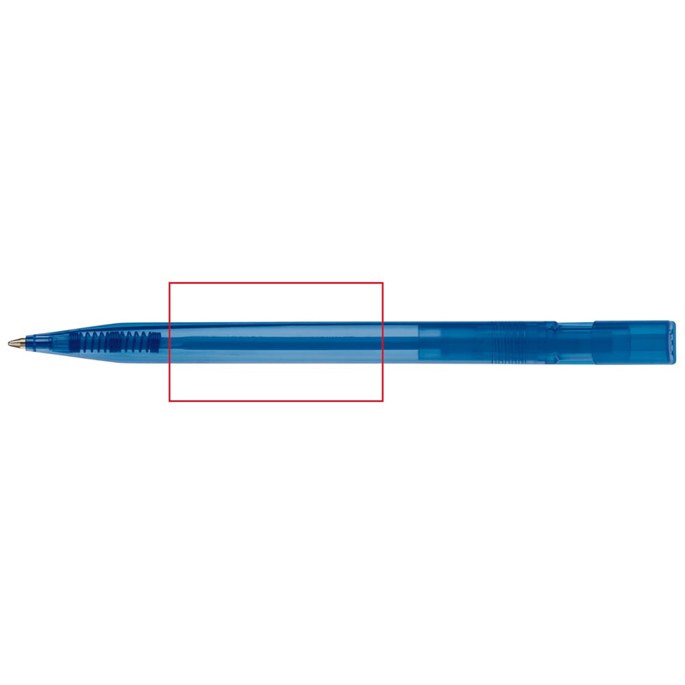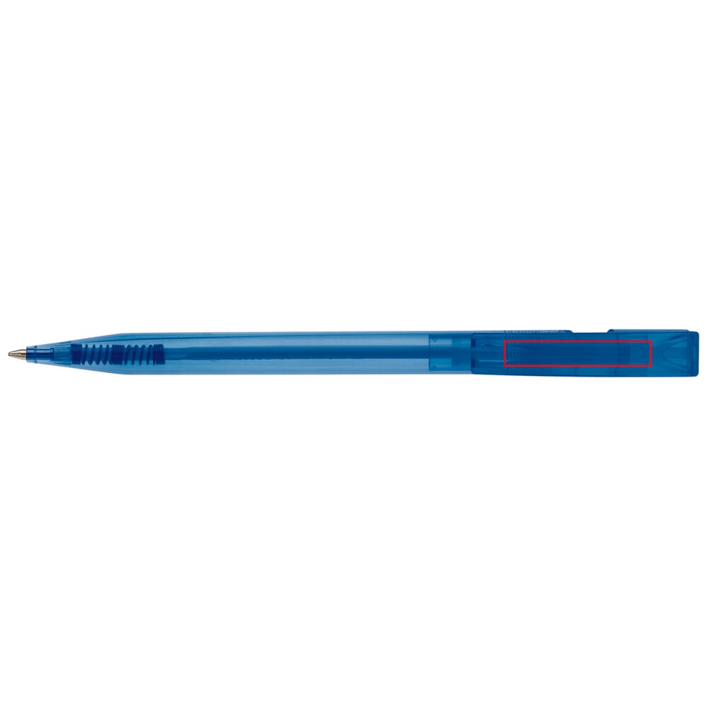 Toppoint design balpen, geproduceerd in Duitsland. Deze pen bevat een X20 vulling voor 2,5km schrijfplezier. Transparante pen met blauwschrijvende vulling.