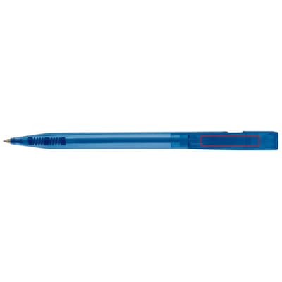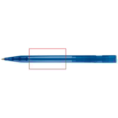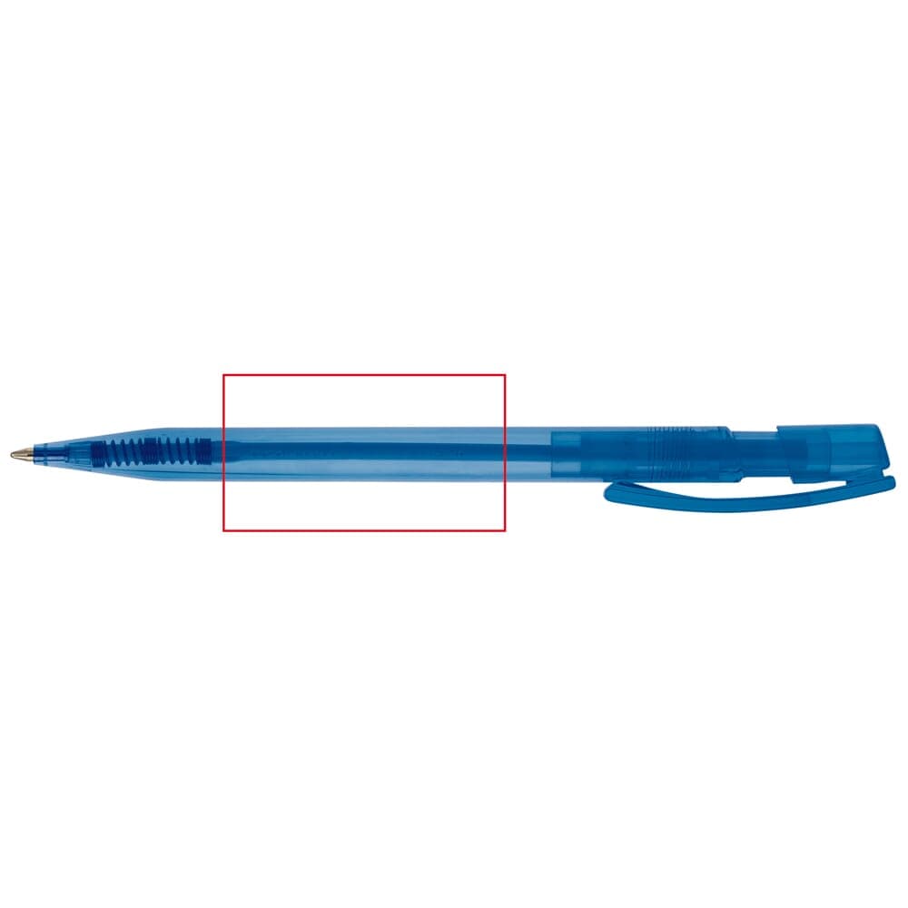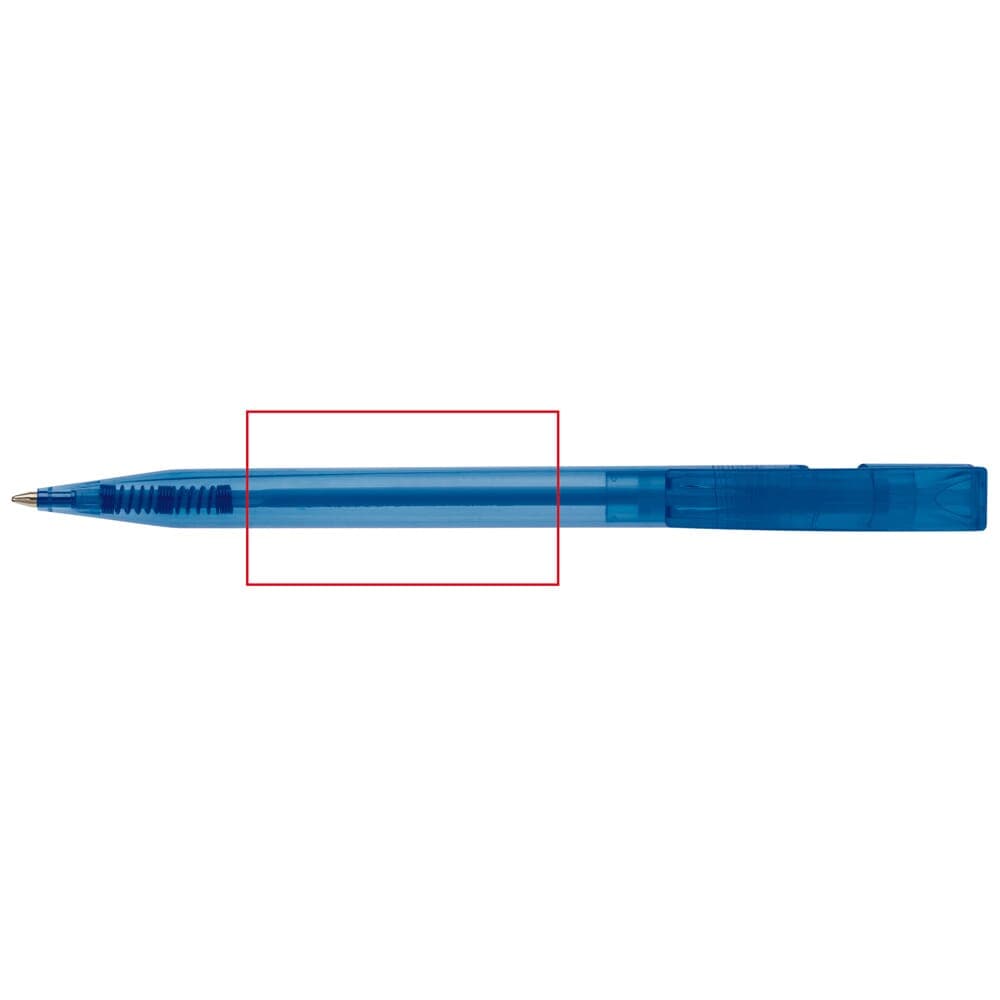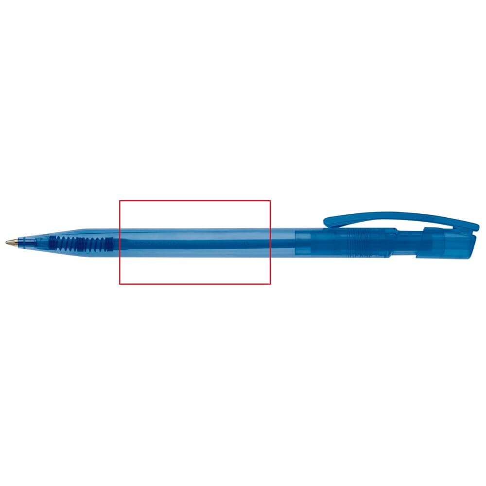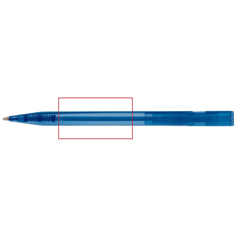 Toppoint design balpen, geproduceerd in Duitsland. Deze pen bevat een X20 vulling voor 2,5km schrijfplezier. Transparante pen met blauwschrijvende vulling.